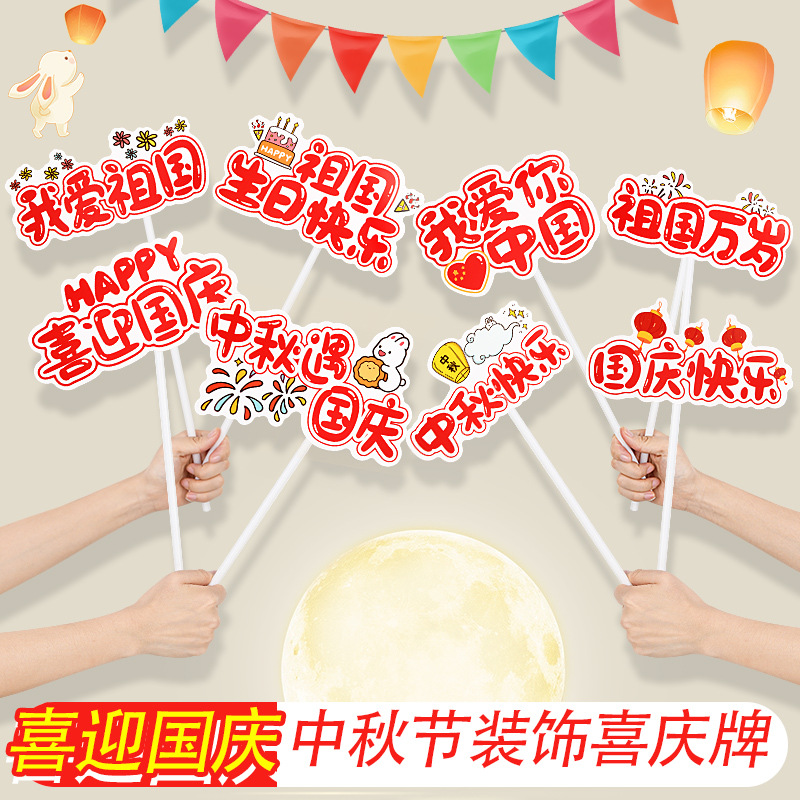 • 中秋節と建国記念日の雰囲気の手持ちプラカード、お祭りプラカード、イベント装飾、会場レイアウト小道具、教師の日の写真撮影用手持ちプラカード