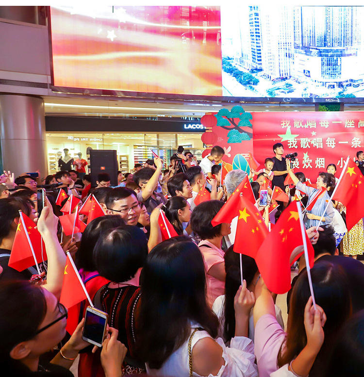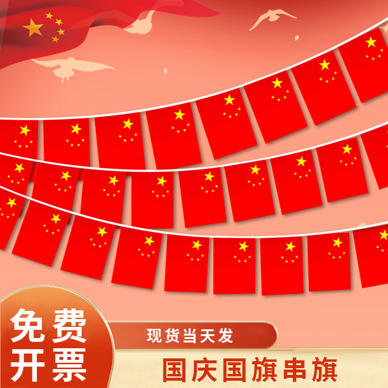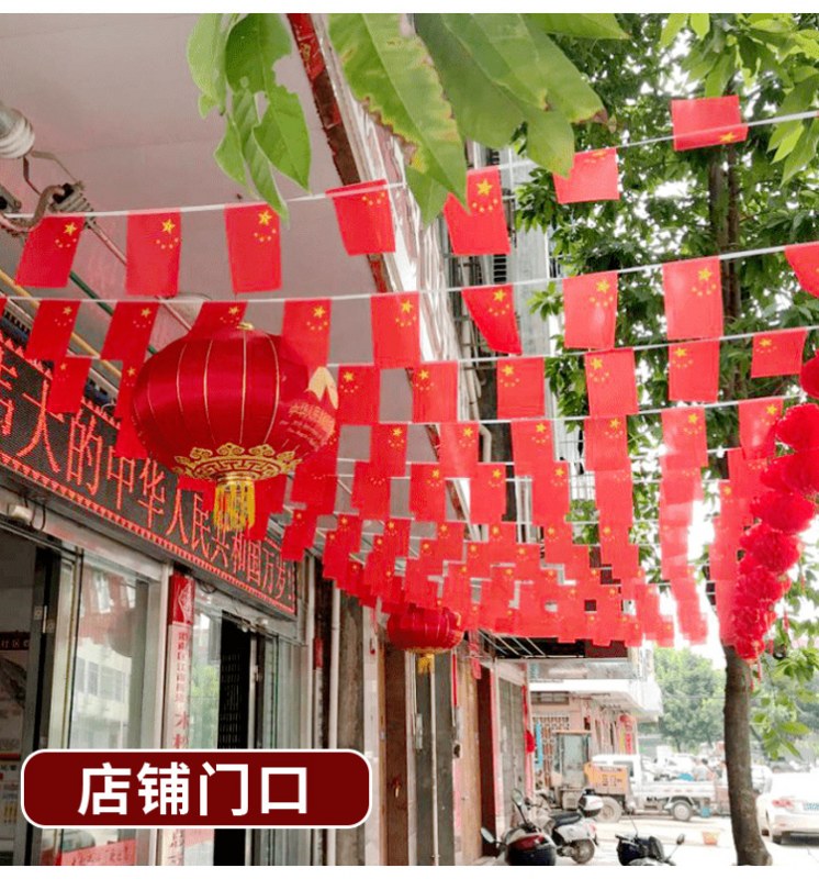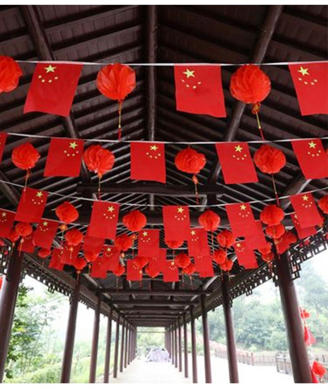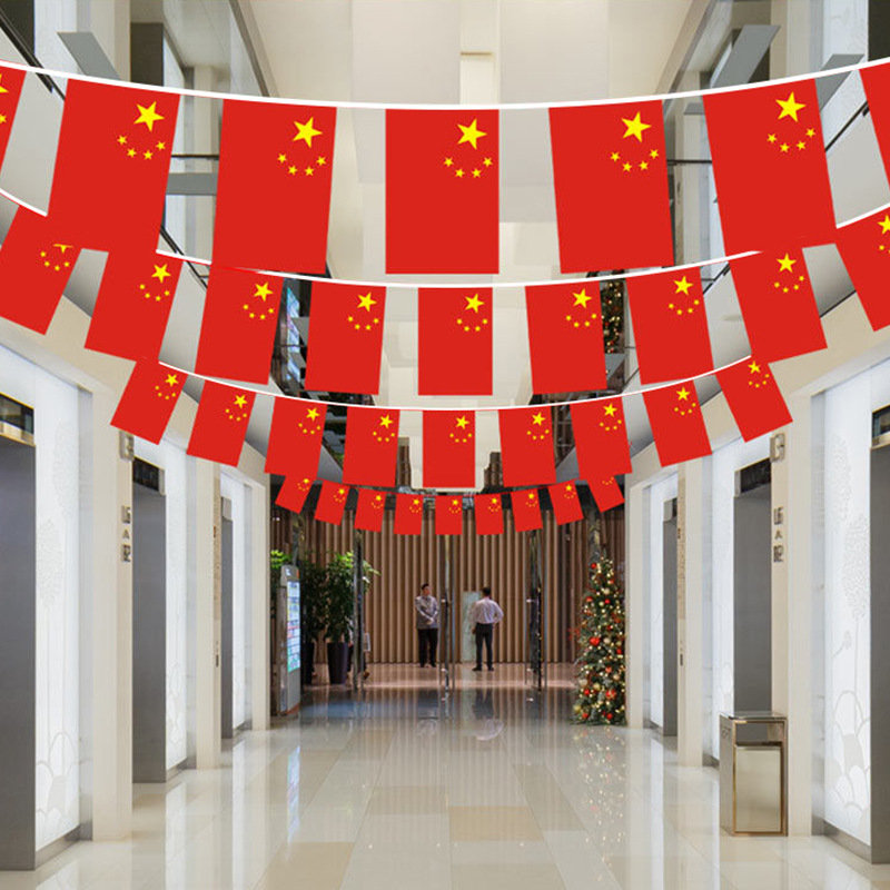 • 建国記念日旗 紐旗 五つ星赤旗 装飾吊り旗 幼稚園手振旗 店街レイアウト プルフラッグ