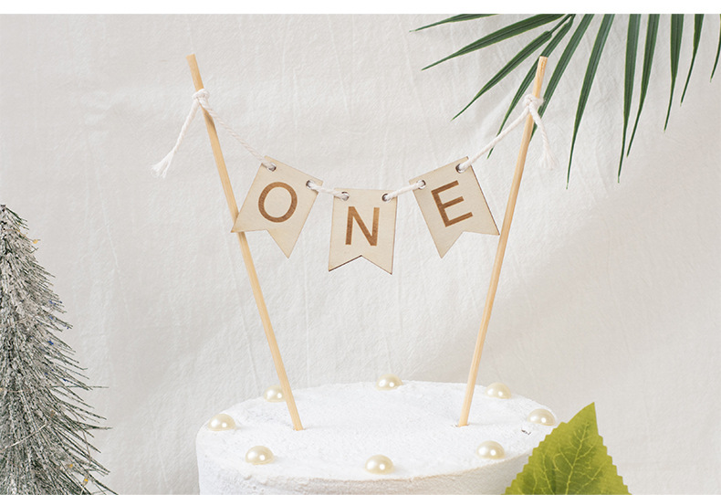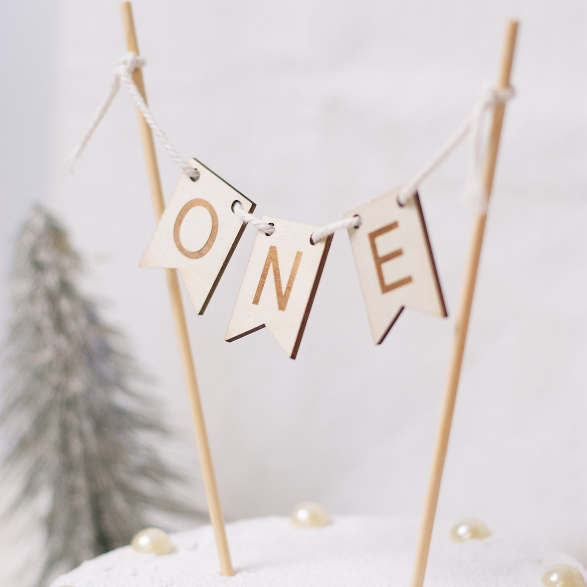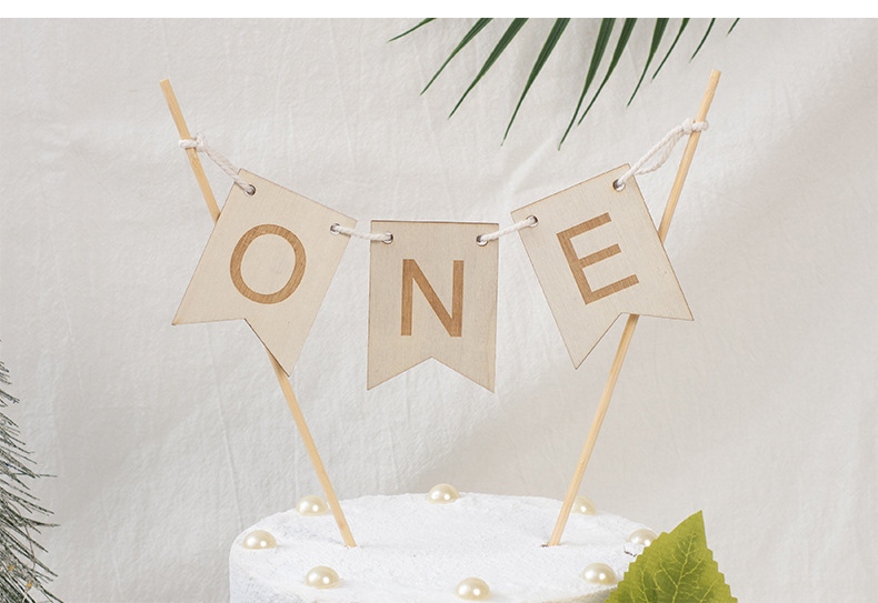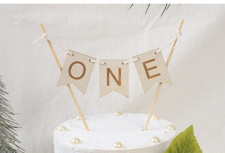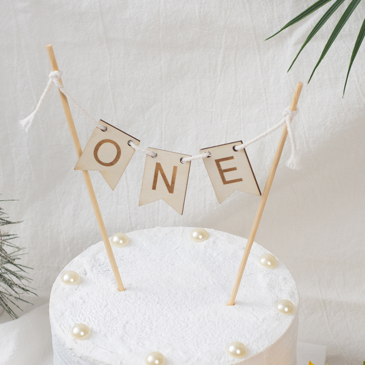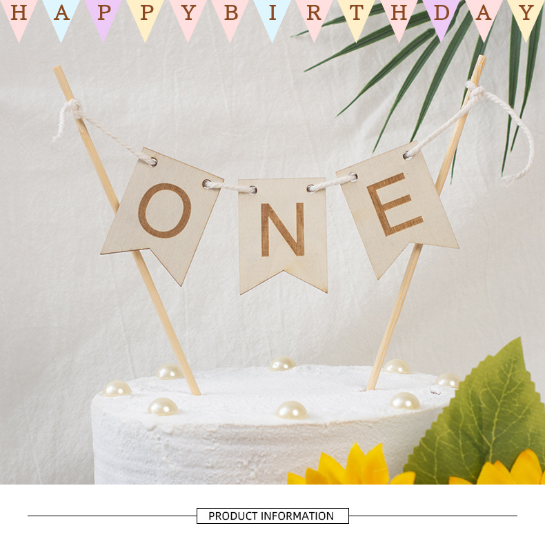 • ケーキインサート木製1歳の誕生日1歳の誕生日ケーキデコレーション木製バナー彫刻