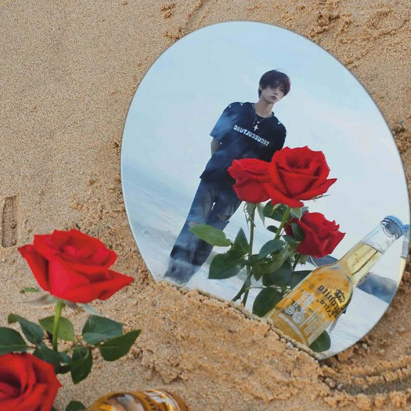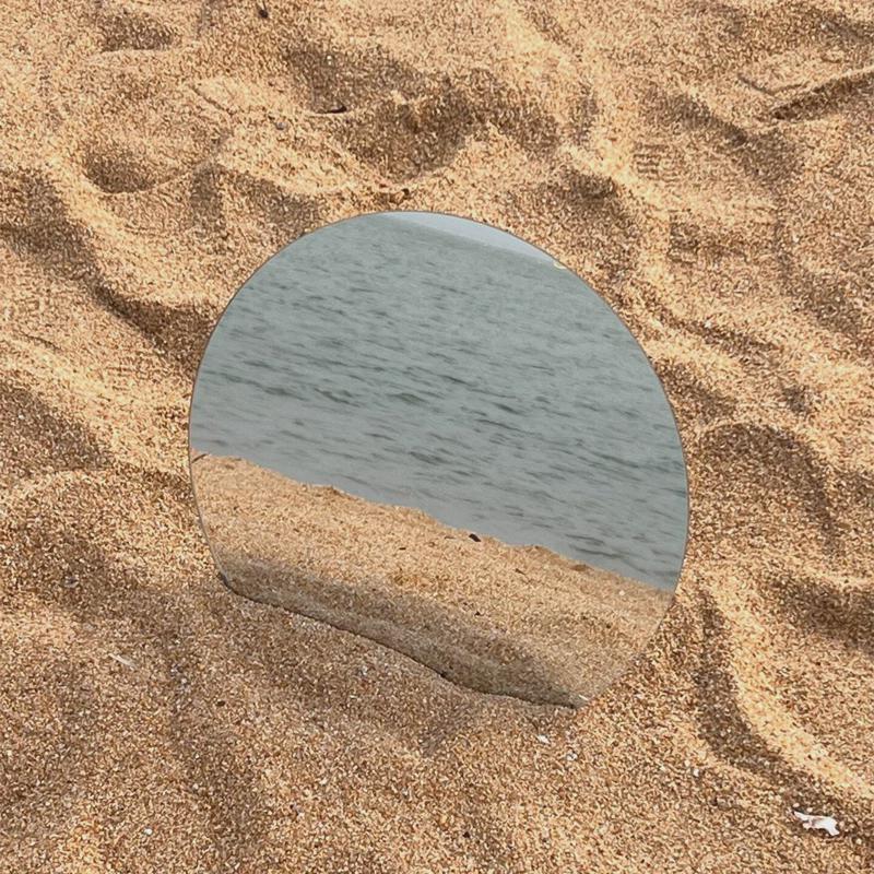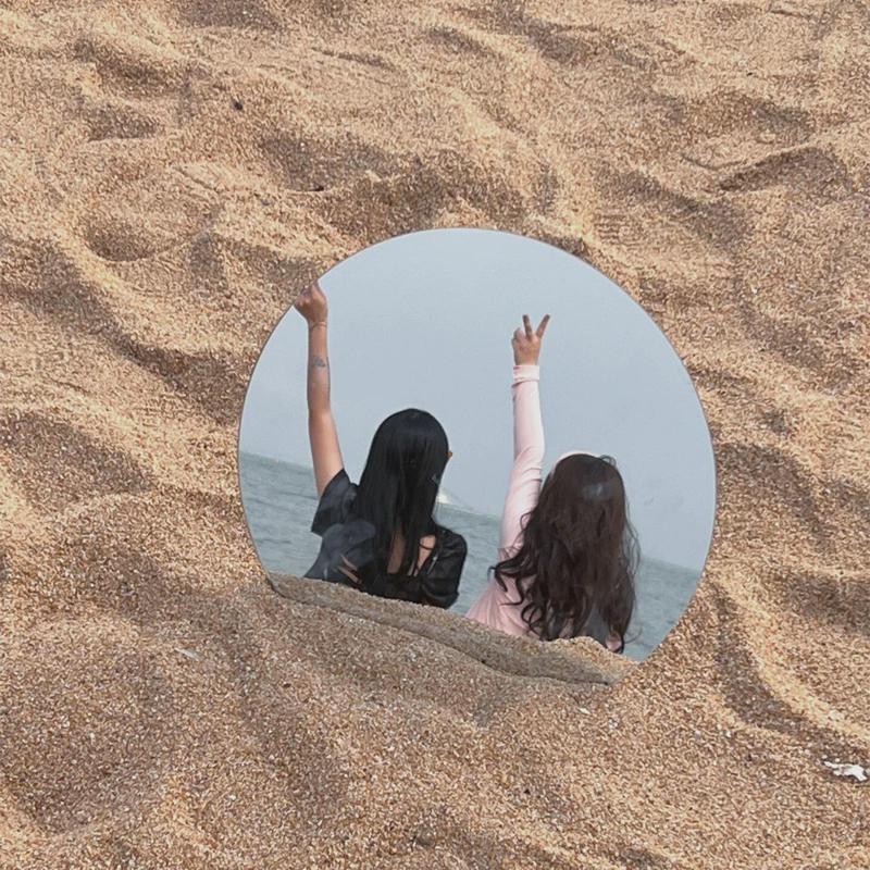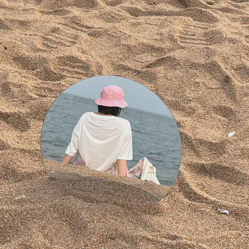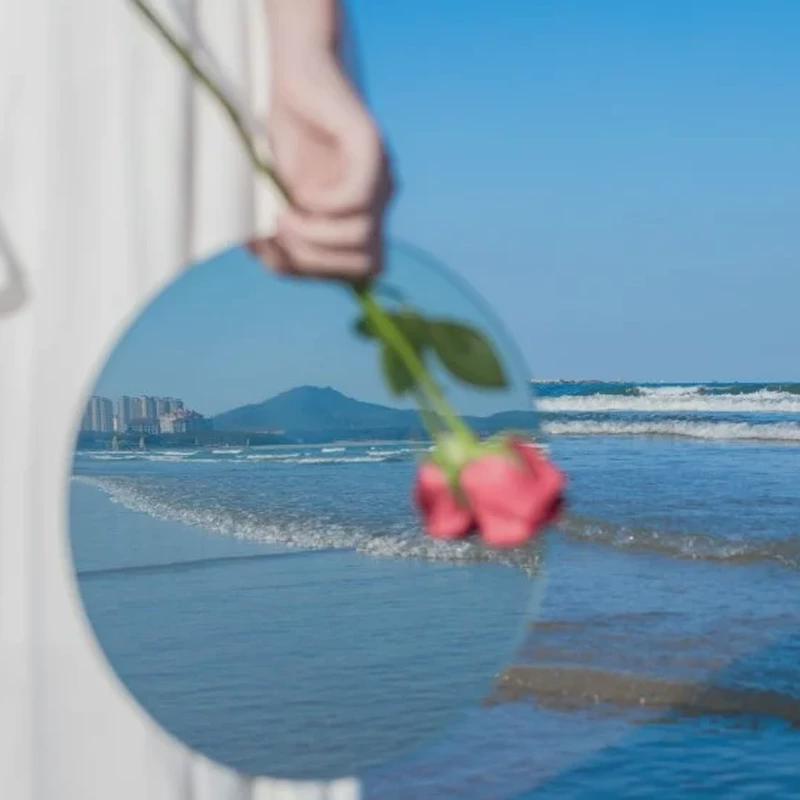 • 夏の旅行カップル用のビーチ写真小道具、美しい雰囲気、空、鏡、丸いビーチヤク