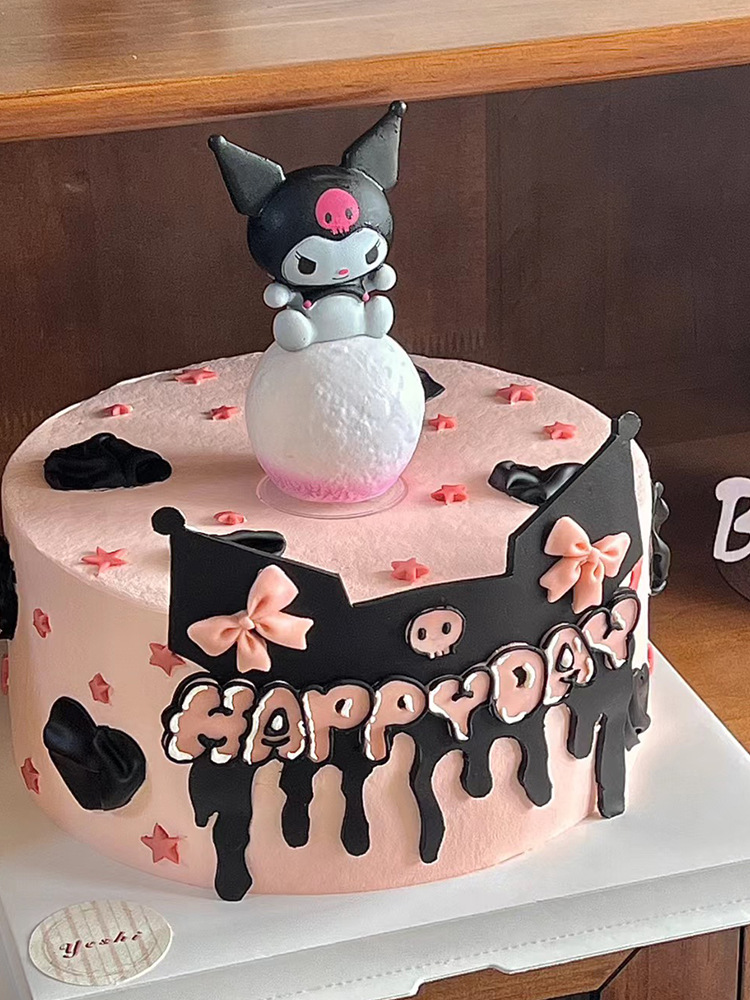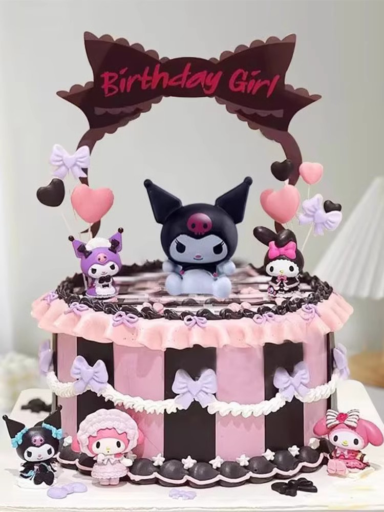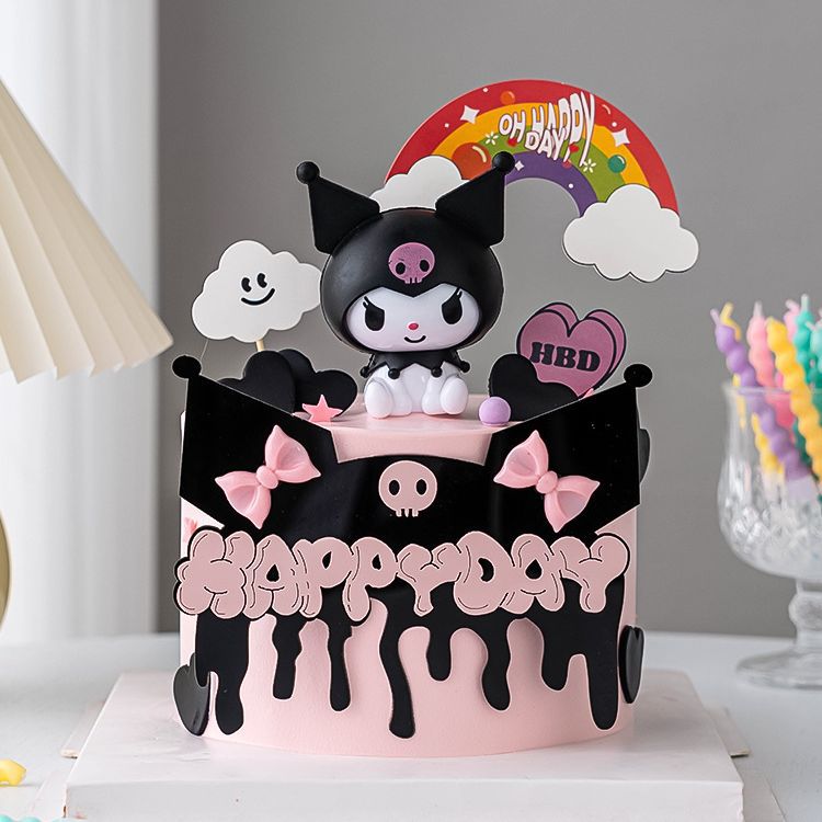 • クロミ子供の誕生日ケーキデコレーションオーナメント黒色粉末デザートテーブルアクリルベーキング漫画プラグイン