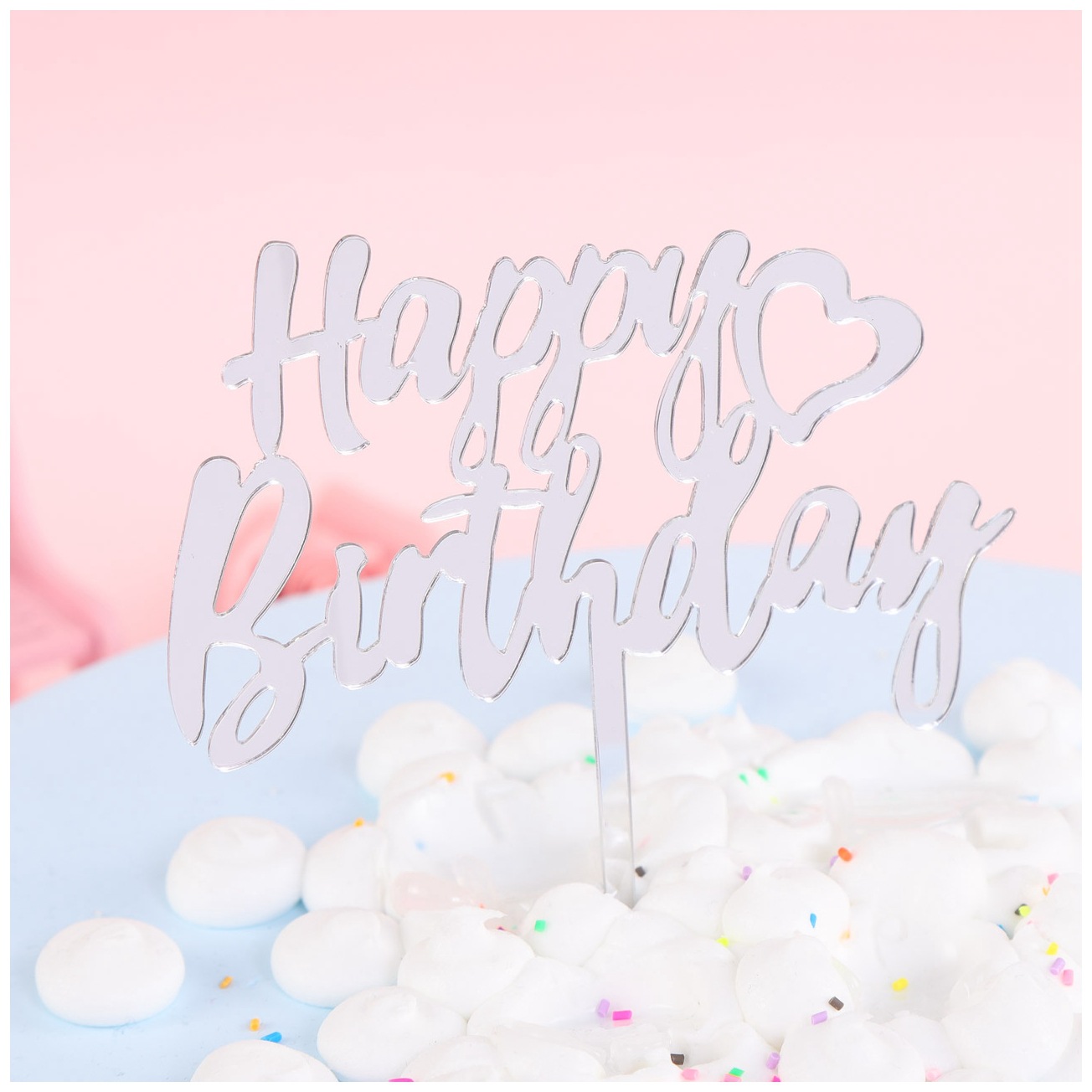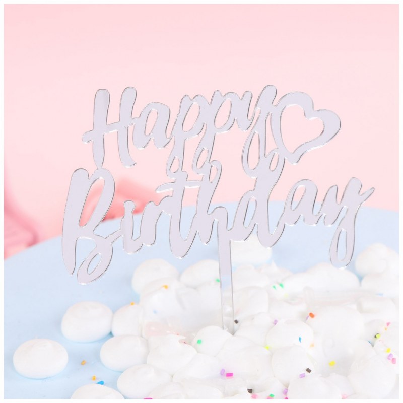 • 金と銀のアクリルカードハッピーバースデーケーキデコレーションフラグマルチ画像マルチカラーカスタマイズ