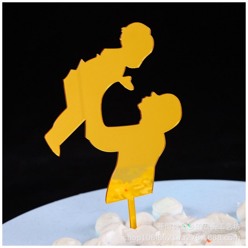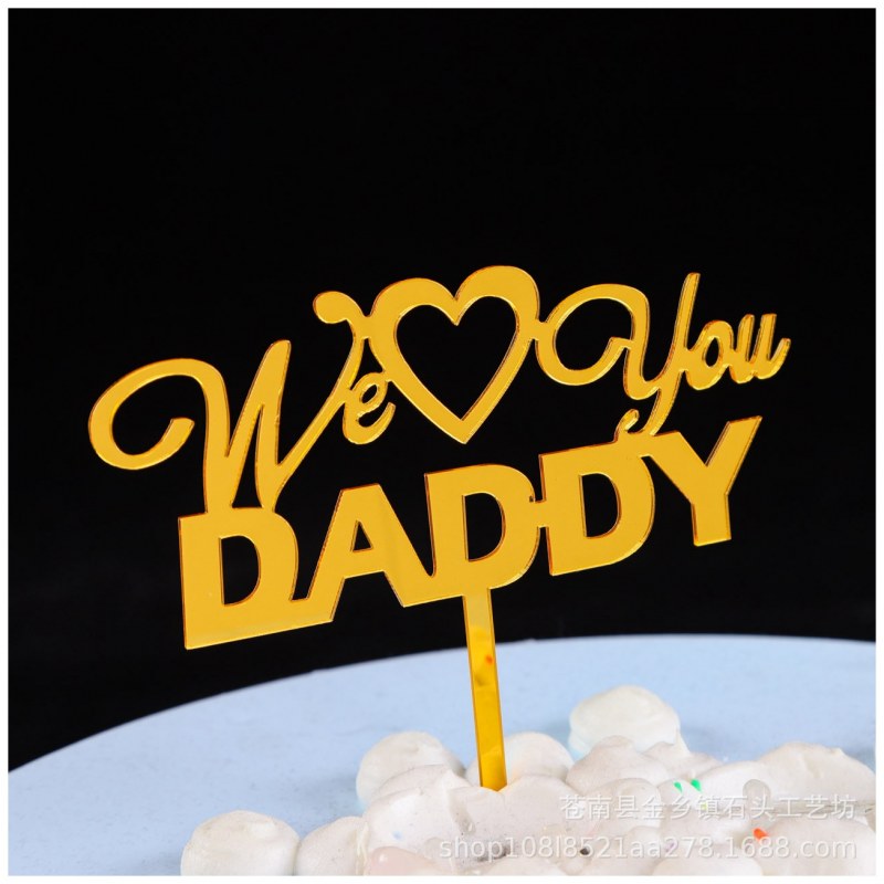 • 幸せな母の日と父の日のケーキデコレーションカード「お母さんとお父さんを愛しています」カードと旗