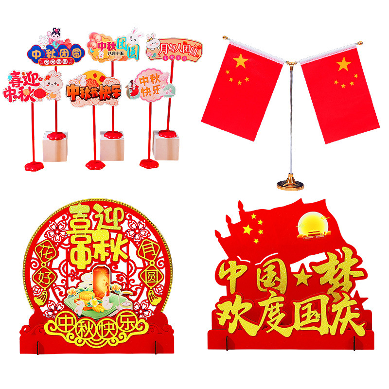 • 中秋節と国慶節のシーンのレイアウト、ショッピング モールの宝石店の儀式用卓上テーブルのフローティング装飾品、雰囲気の装飾、手持ちプラカード