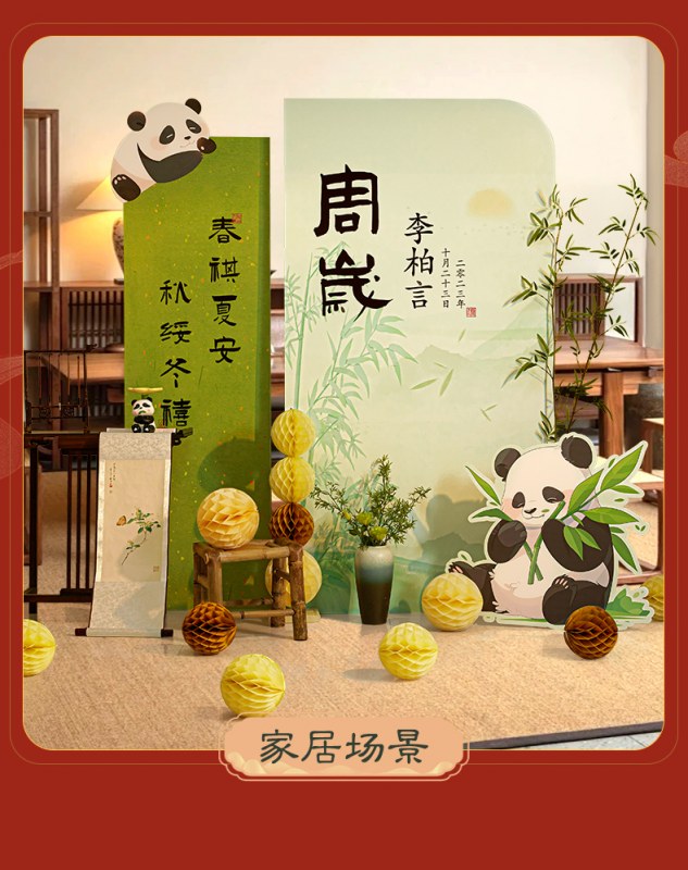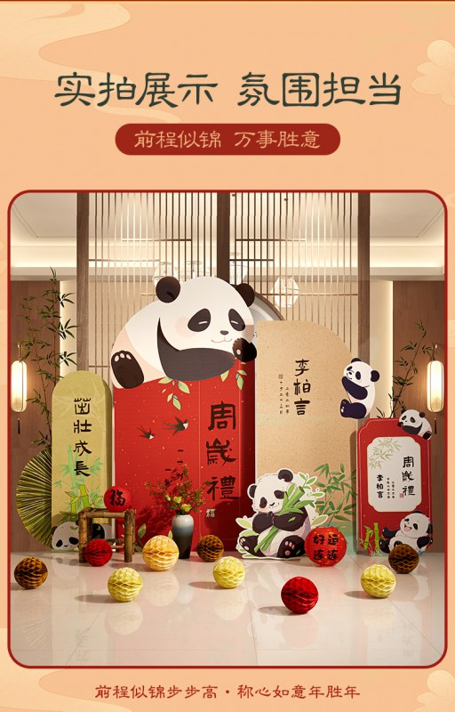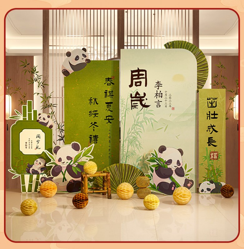 • 【⭐️居家轻松布置】长乐未央周岁礼熊猫kt板A套餐 免