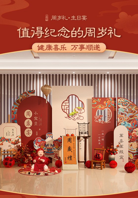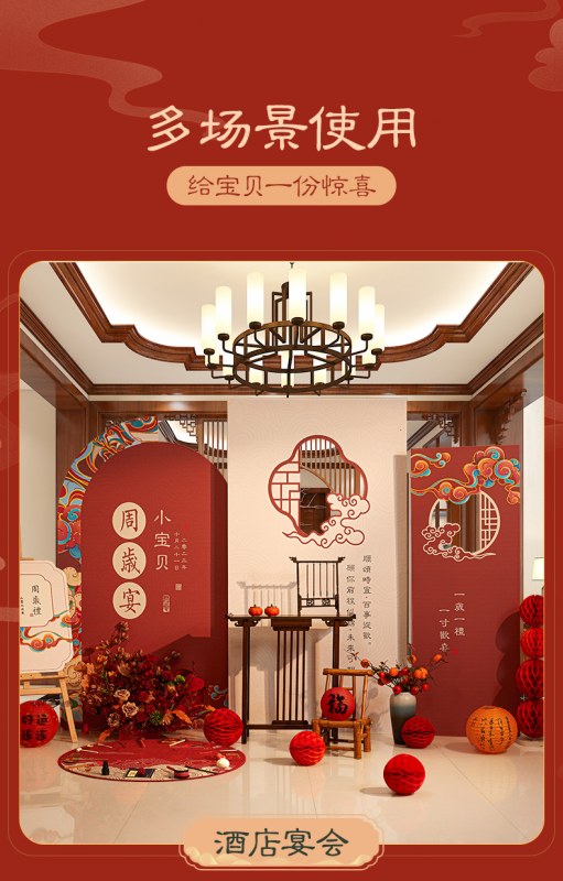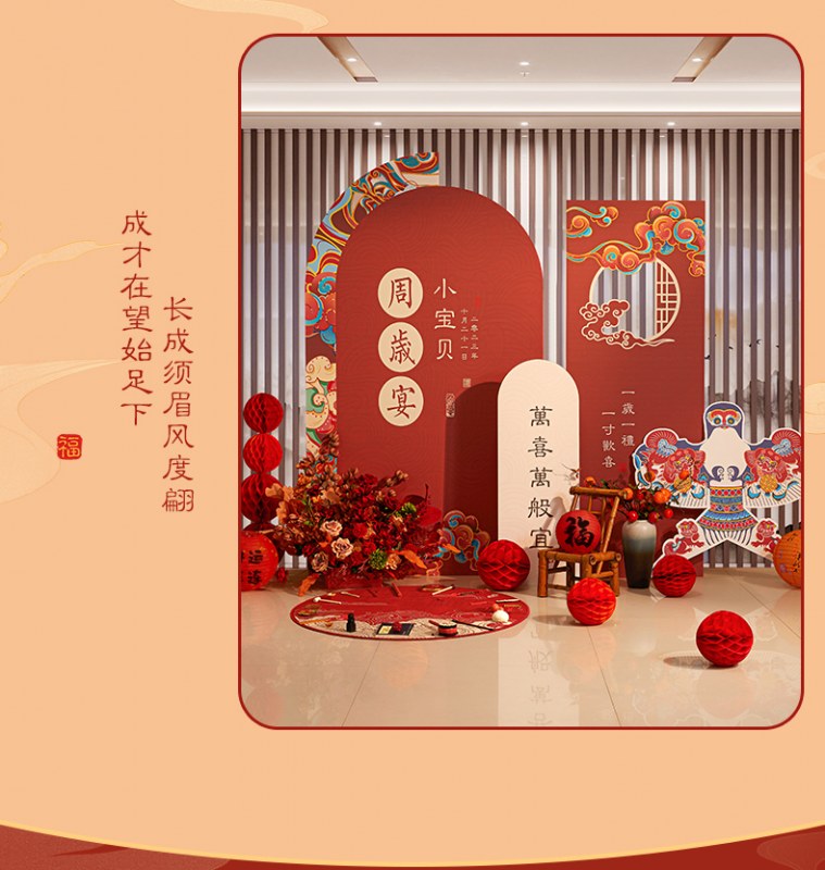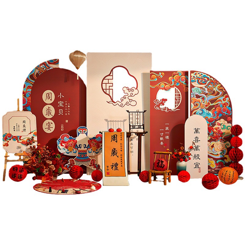 • 最初の誕生日の装飾シーンの少年少女の背景壁インターネット有名人の新しい中国風の掴み週間ギフト kt
