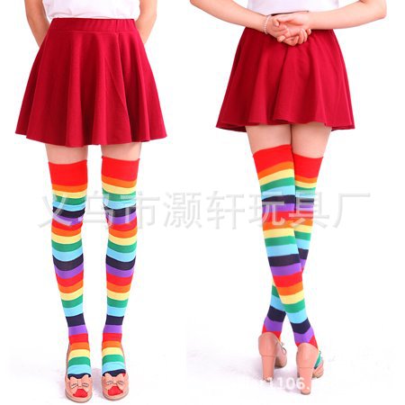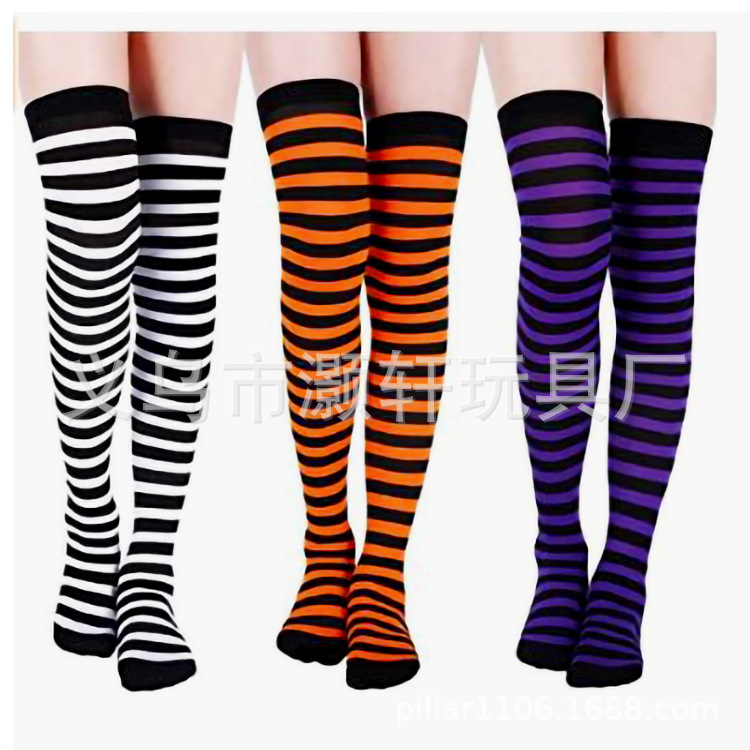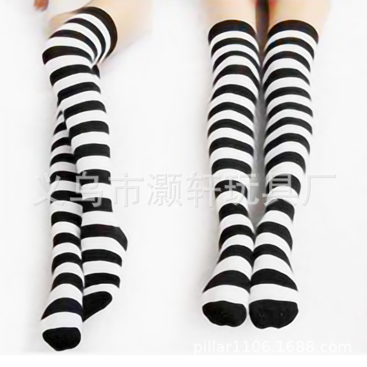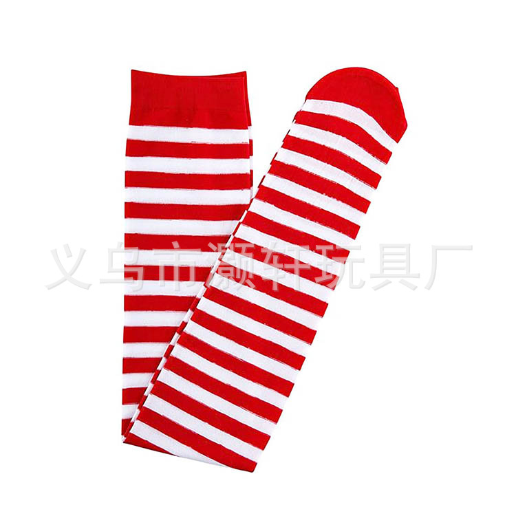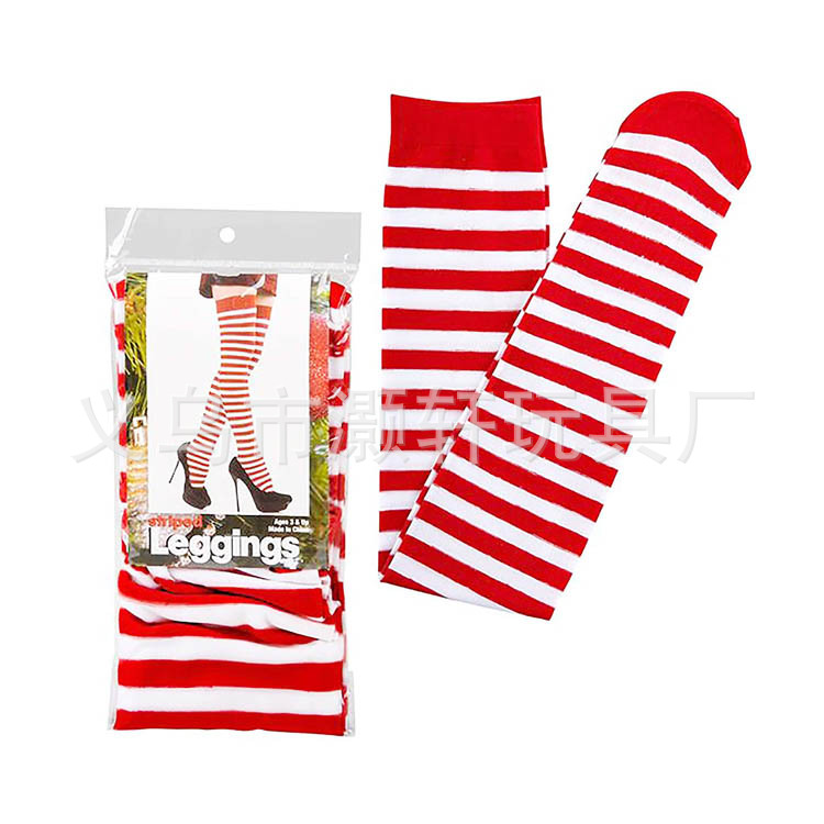 • ハロウィン クリスマス ニーハイ ストッキング 黒と白 白と赤のストライプ ストッキング 衣装小道具