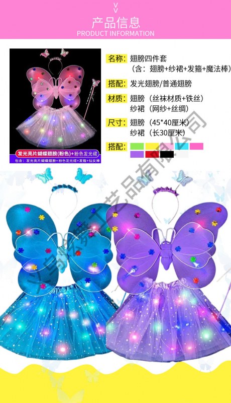 • 双层20灯翅膀+发光蓬蓬裙四件套