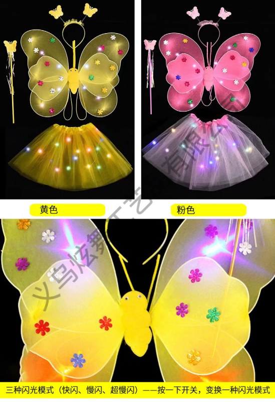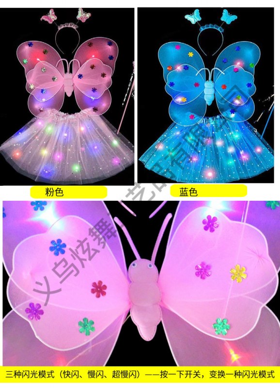 • 双层发光蝴蝶翅膀三件套