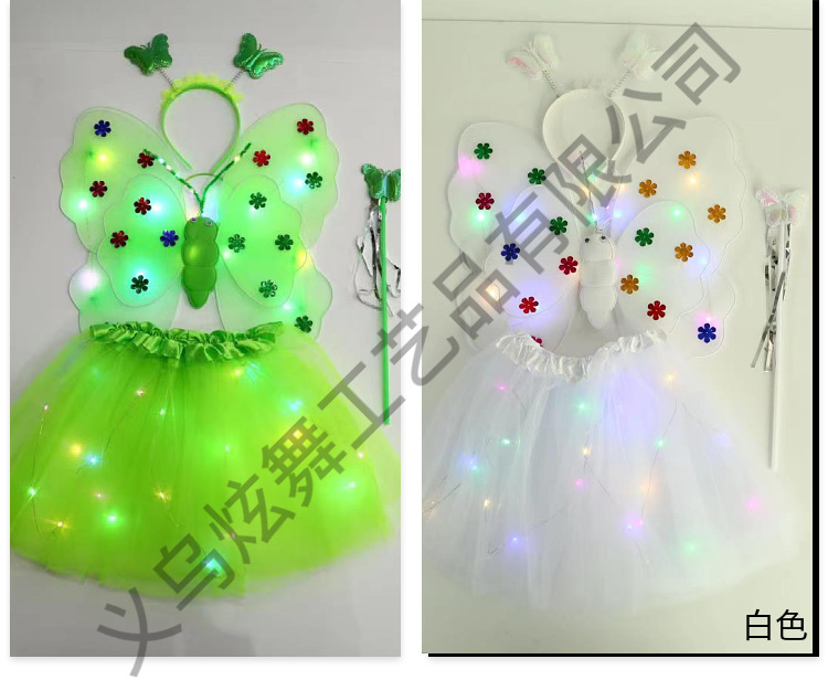 • 双层20灯翅膀+发光星星裙四件套