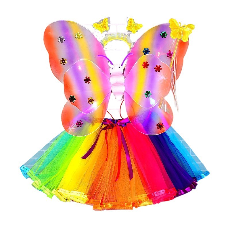 • 20灯彩虹翅膀+发光五彩花边纱裙