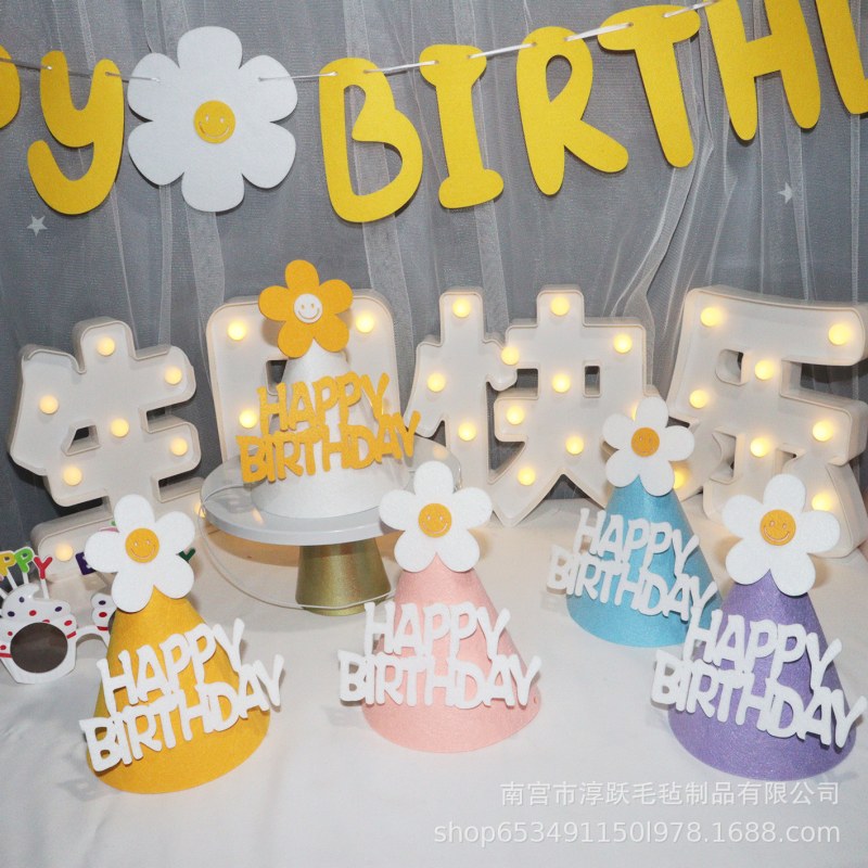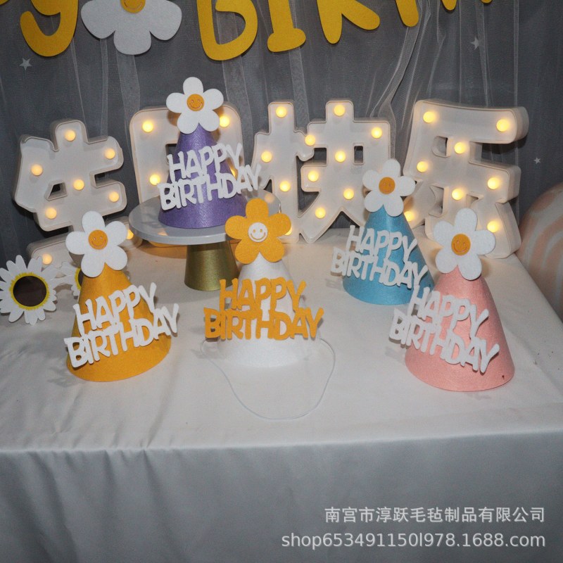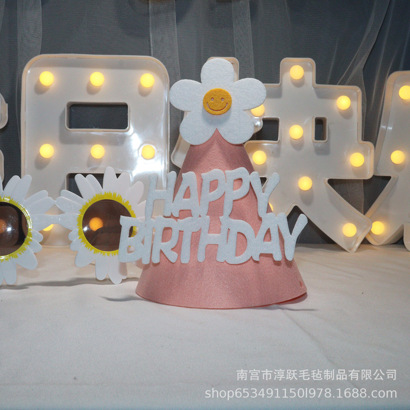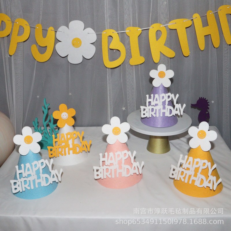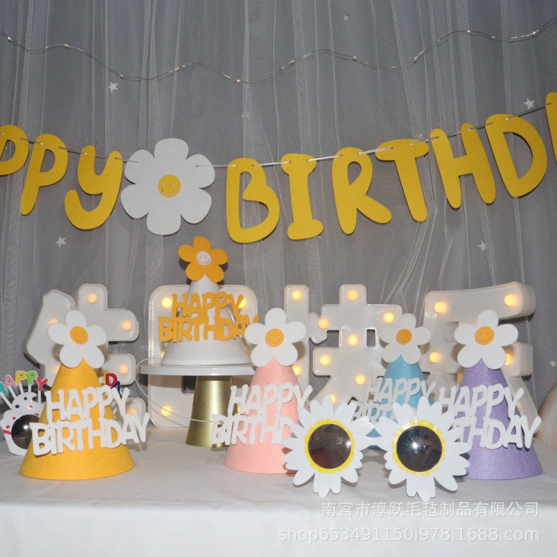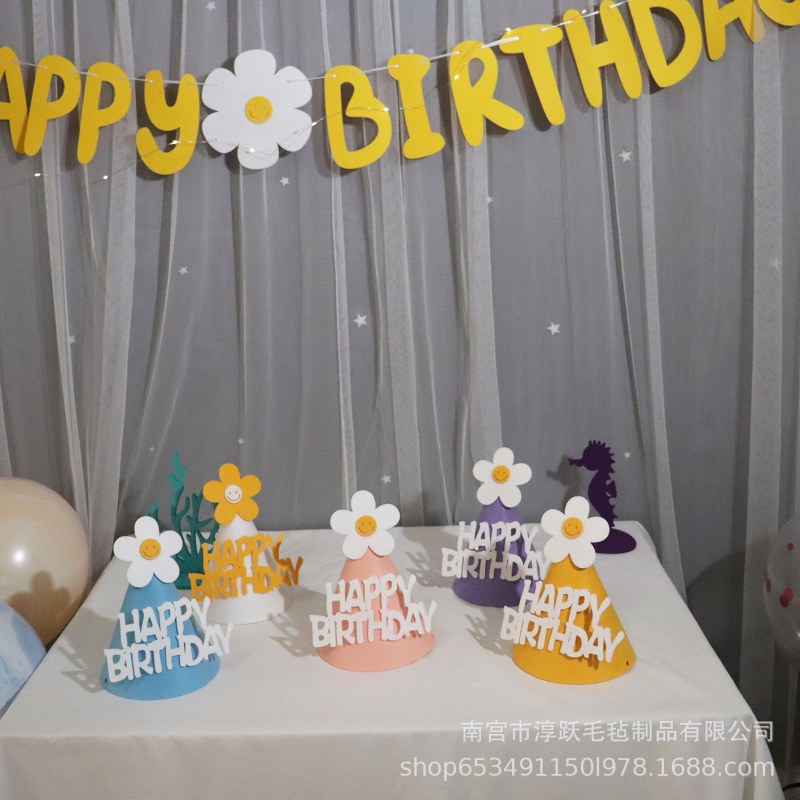 • インリトルデイジーハッピーバースデー帽子フェルトインターネット有名人パーティー写真小道具子供赤ちゃん最初の誕生日の装飾