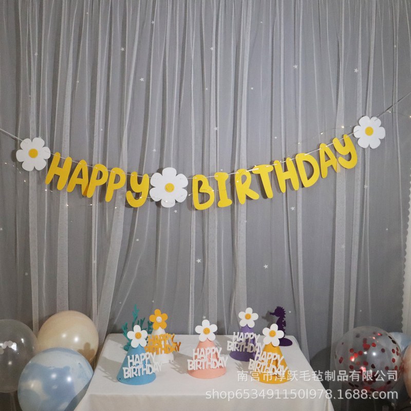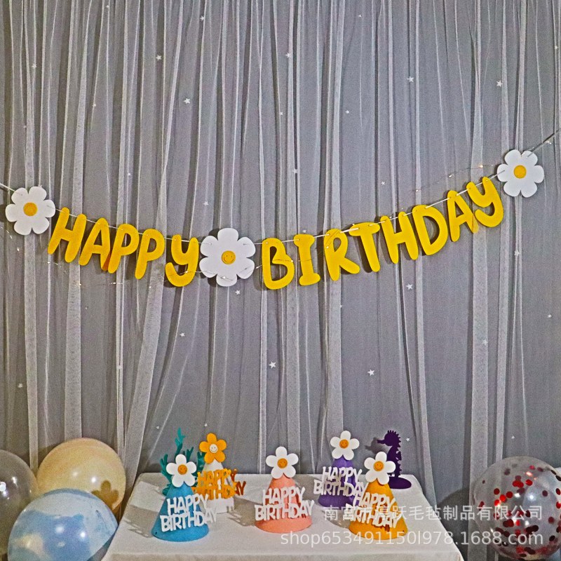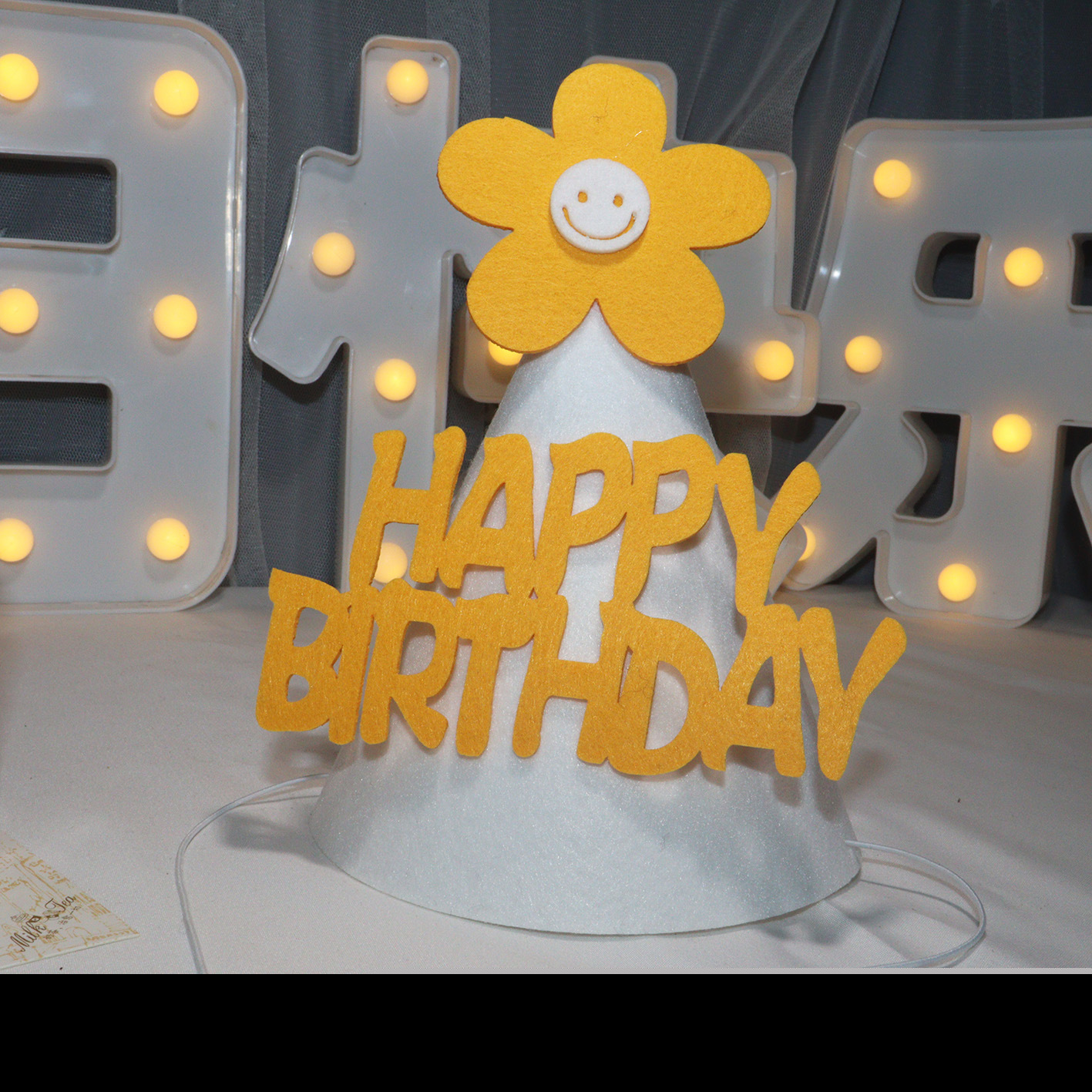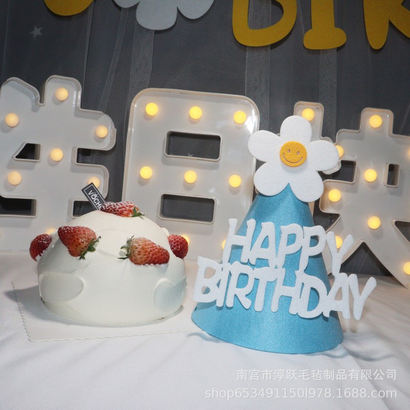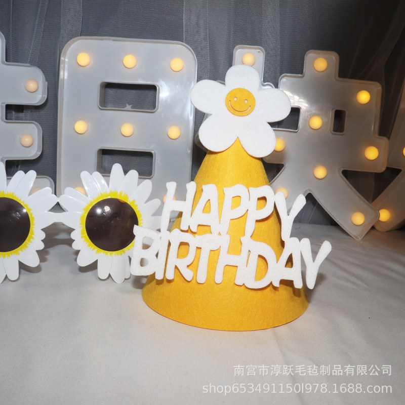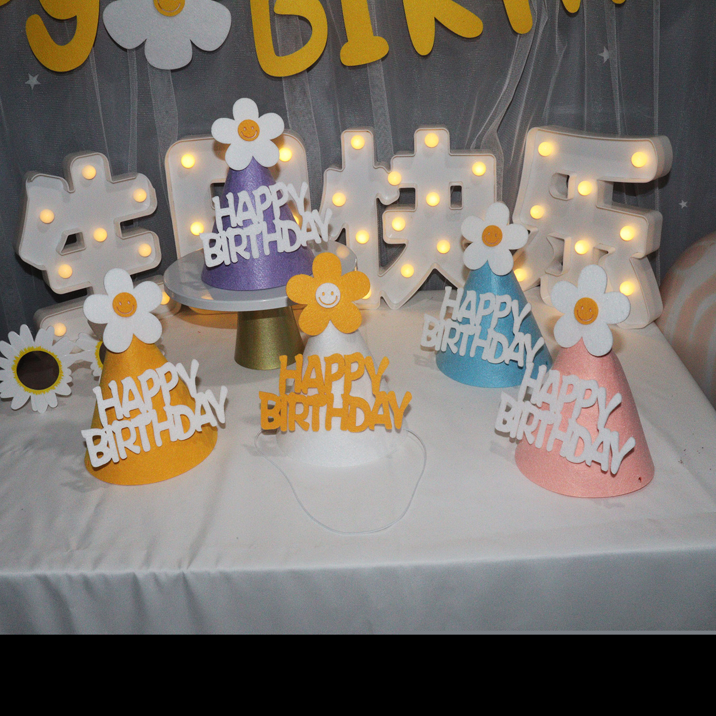 • インリトルデイジーハッピーバースデー帽子フェルトインターネット有名人パーティー写真小道具子供赤ちゃん最初の誕生日の装飾