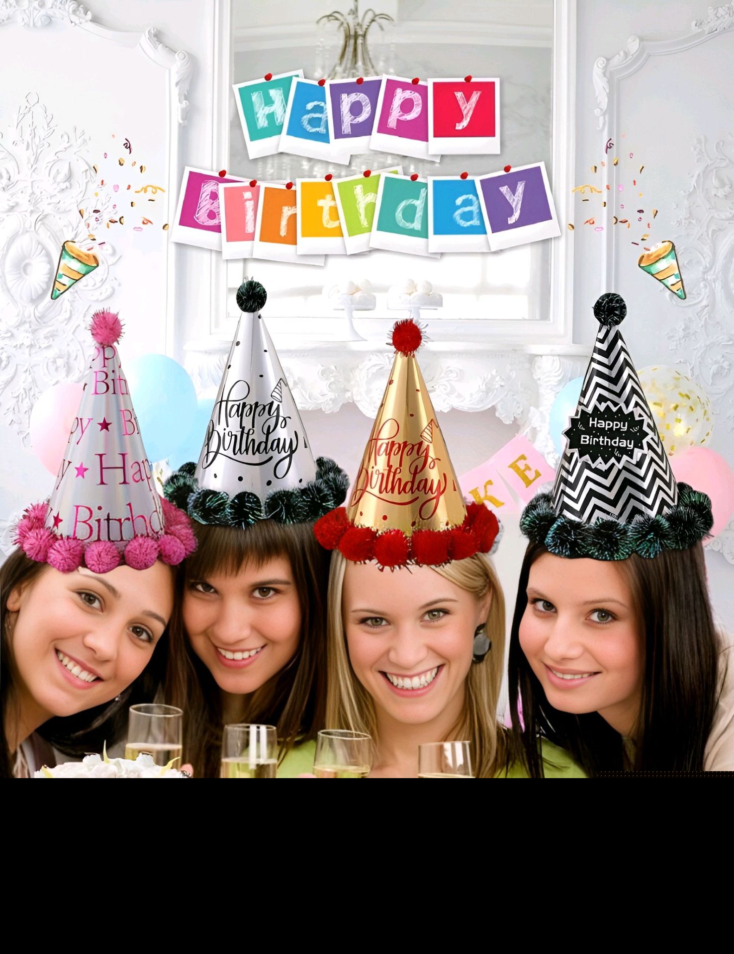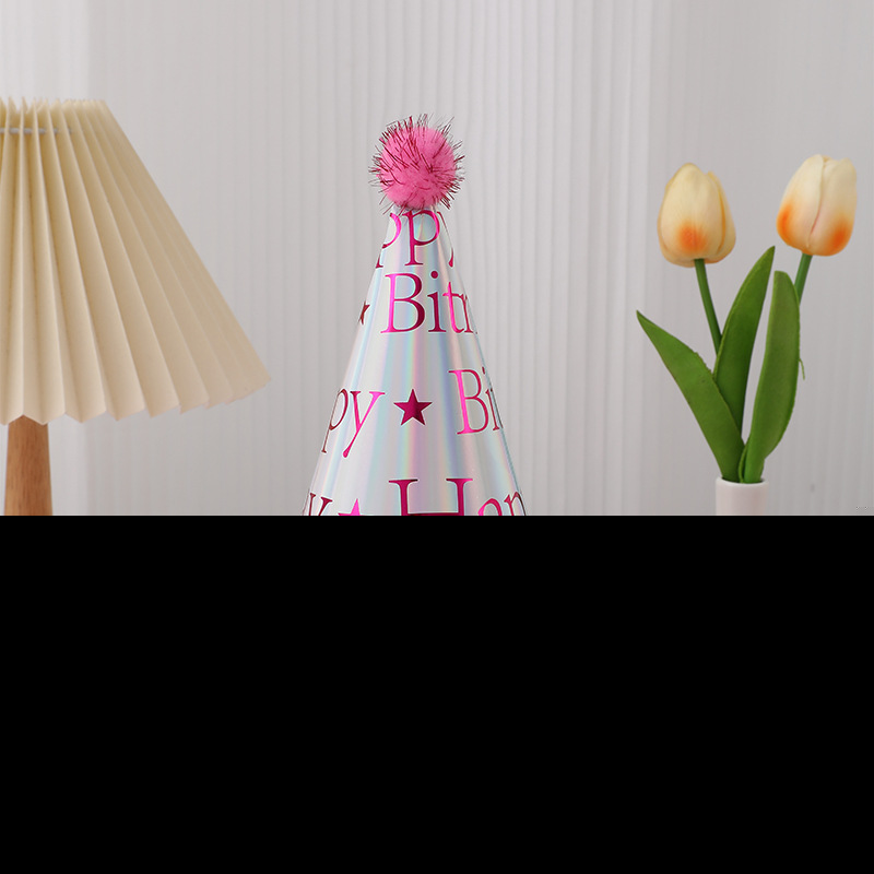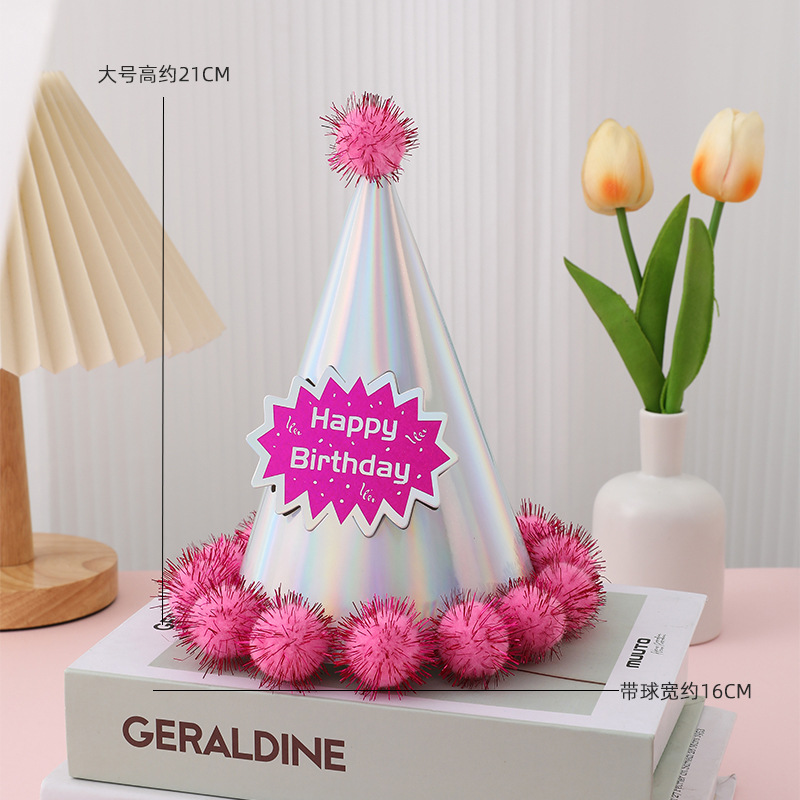 • 黒と金の毛皮のボールの誕生日帽子、子供と大人の最初の誕生日の装飾用品、パーティーの先のとがった誕生日紙の帽子の卸売