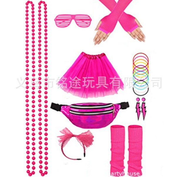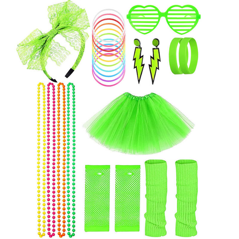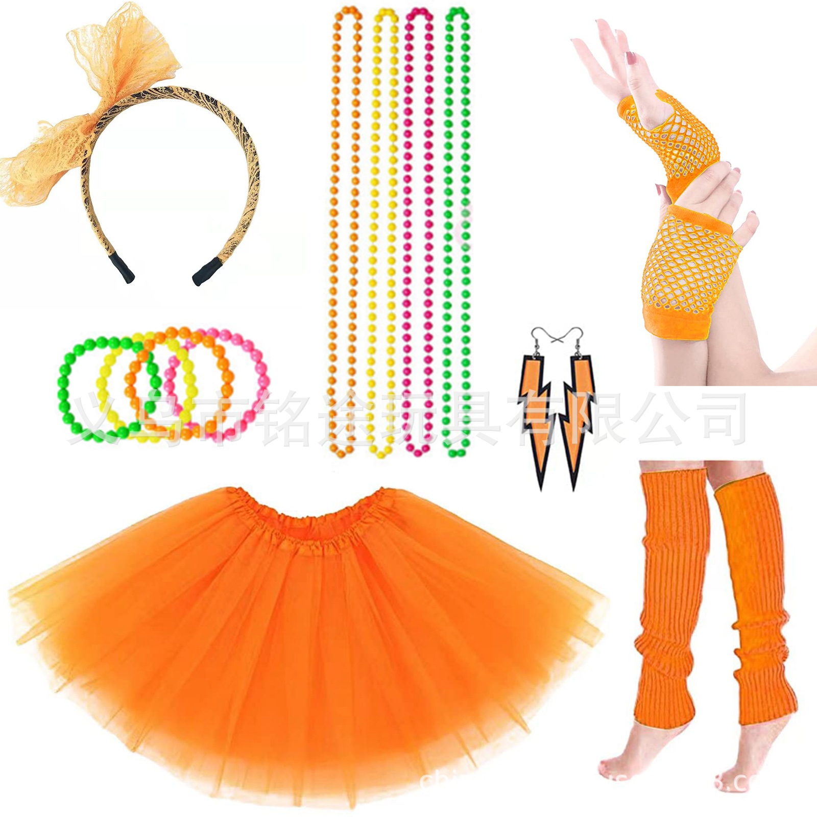 • 1980 年代のカラフルなネオンスーツカラフルなレースのヘッドバンドヘッドバンド網タイツ手袋脚カバーパーティーアクセサリー