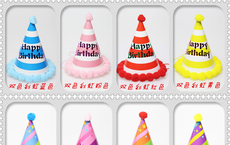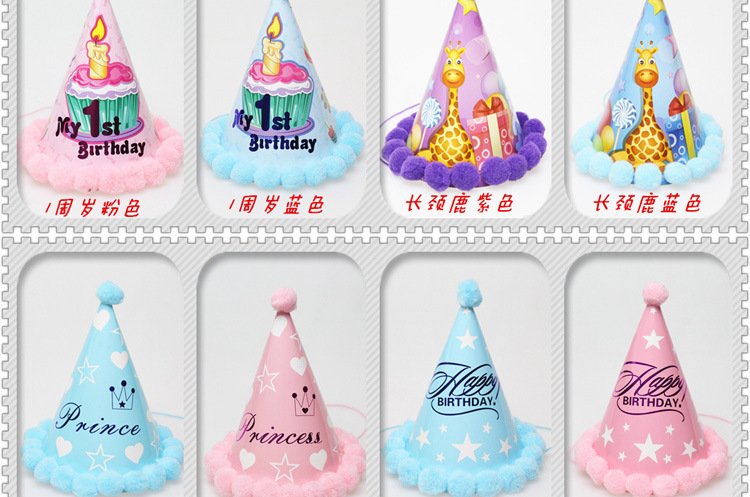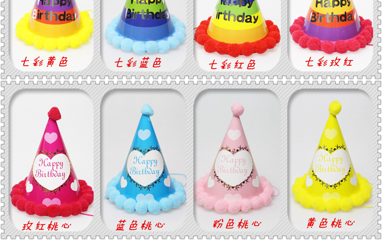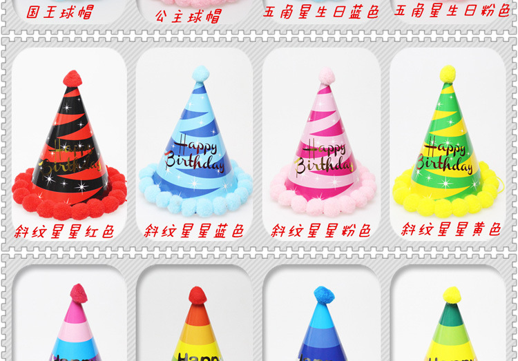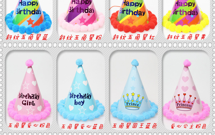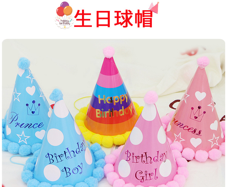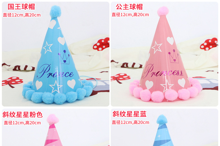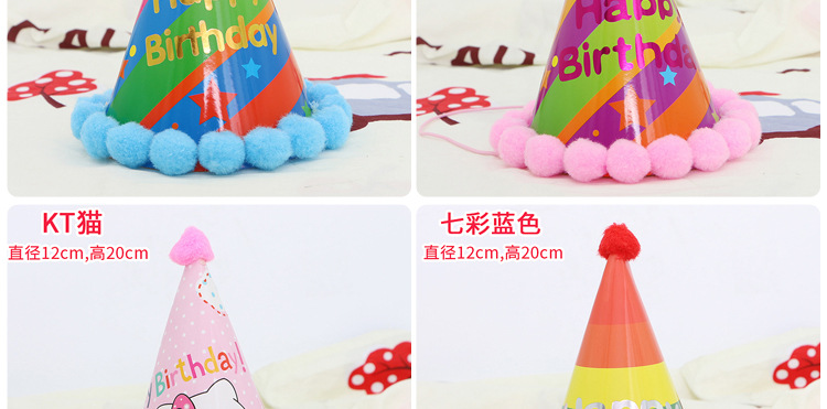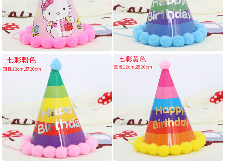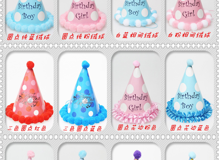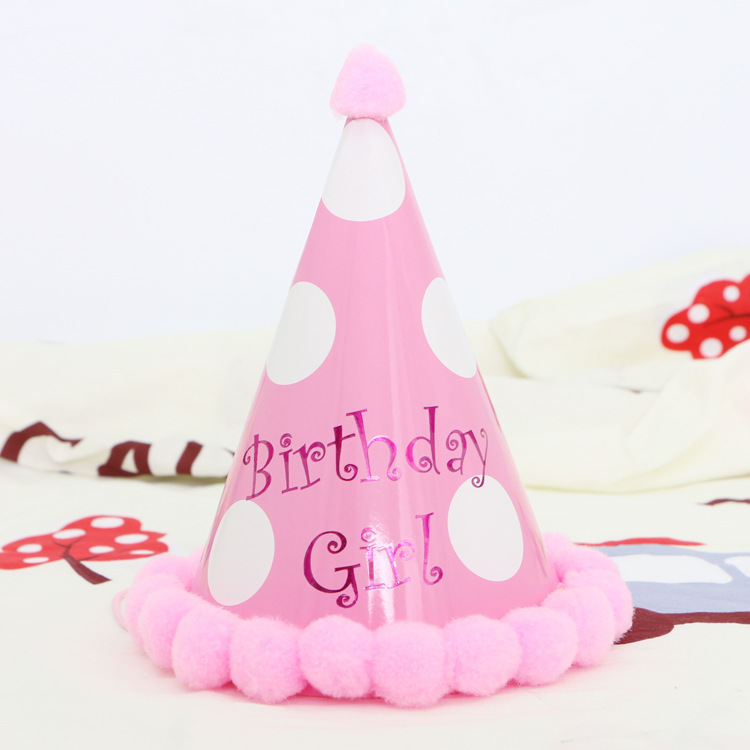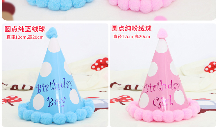 • 子供の誕生日パーティーとんがり帽子ポンポンとんがり帽子水玉ポンポン紙パーティーハット卸売