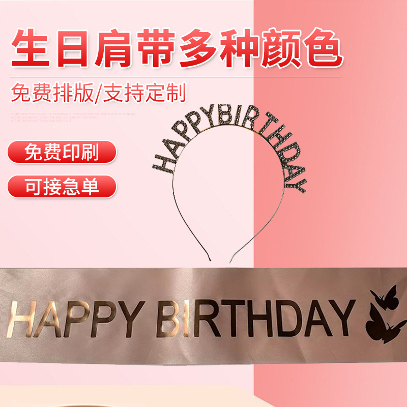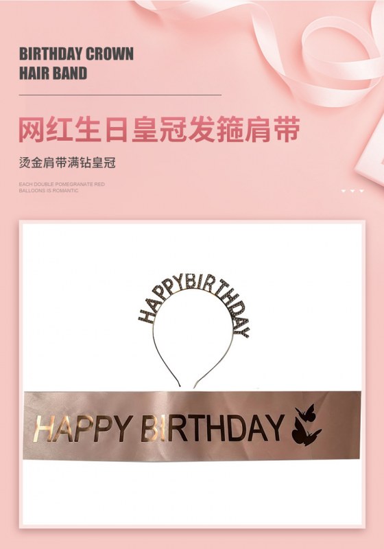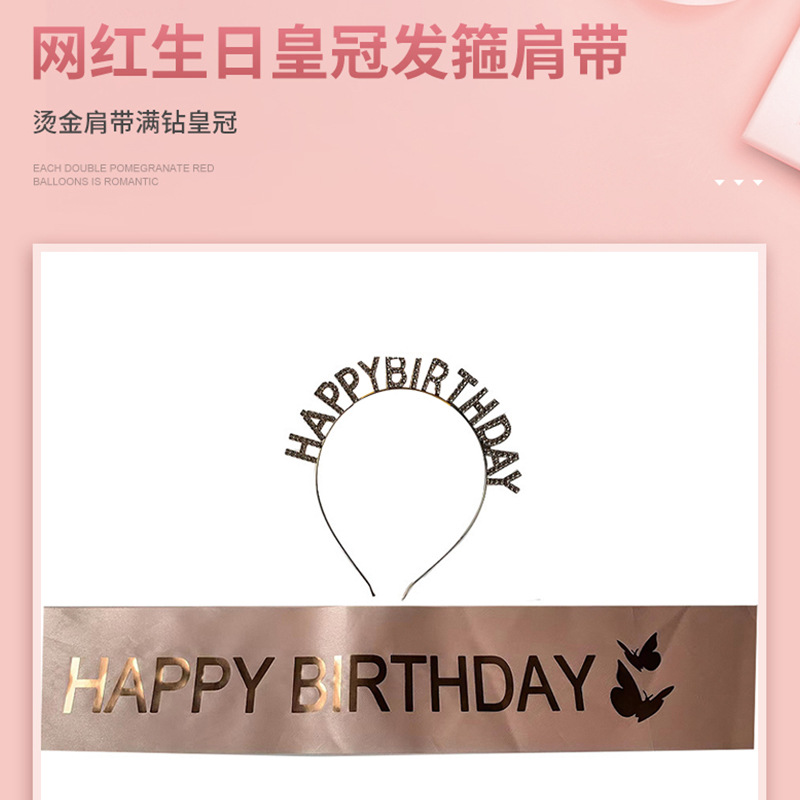 • ヨーロッパとアメリカのファッション誕生日ドレス HAPPY BIRTHDAY カチューシャ ショルダーストラップ エチケット ベルト ガール カチューシャ ベルト