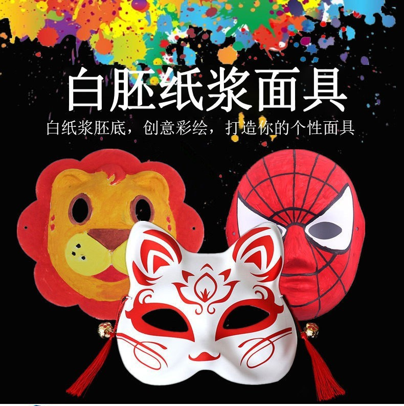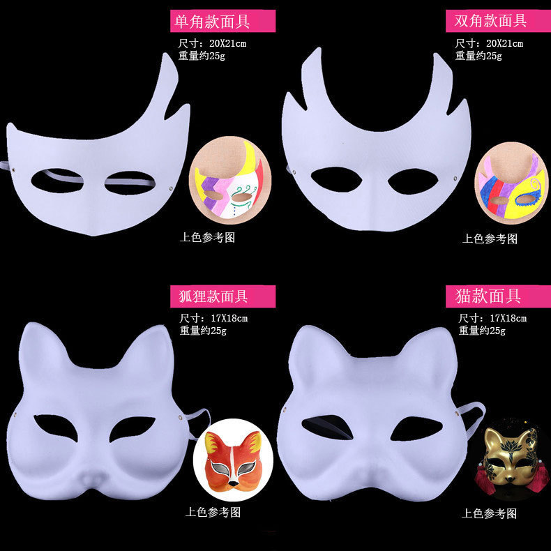 • Diy白胎児紙張り子フェイシャルメイクマスク猫の顔ハーフ顔京劇男性と女性のフェイシャルメイク動物子供ブランクマスク
