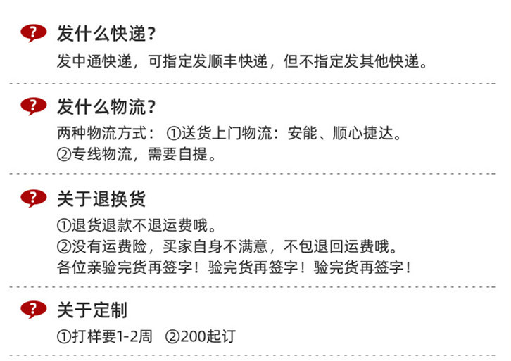 弊社が取り扱っている商品は、自社の海外工場から直送しています。ご入金が確認でき次第に商品を発送いたします。ご注文殺到時や、ご注文数量、種類が多い場合は、発送が遅れる可能性がございます、ご了承ください。ご注文商品の中に在庫がない商品につき、その商品のみキャンセルさせていただき、在庫のある商品のみをまとめて発送させていただきます。また、ご注文後の商品追加や、内容変更、同梱などはお受付しておりません。