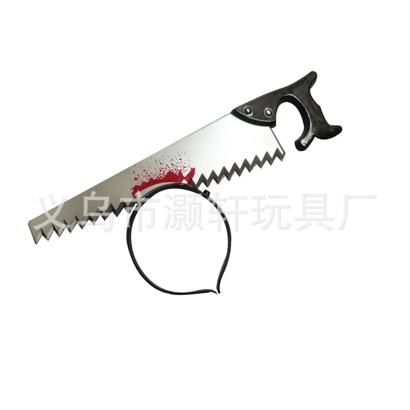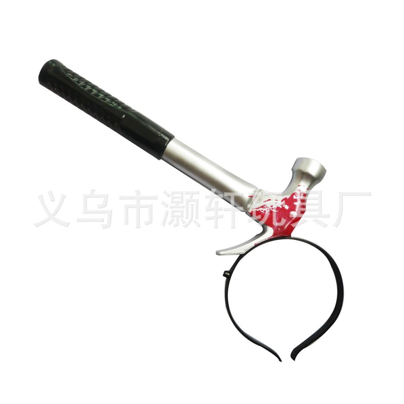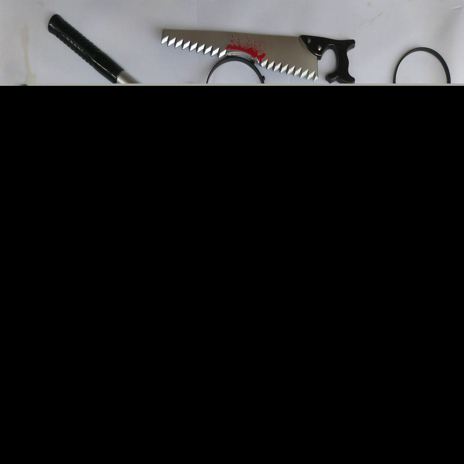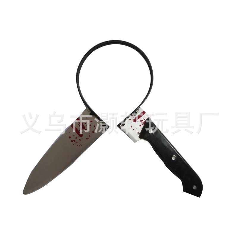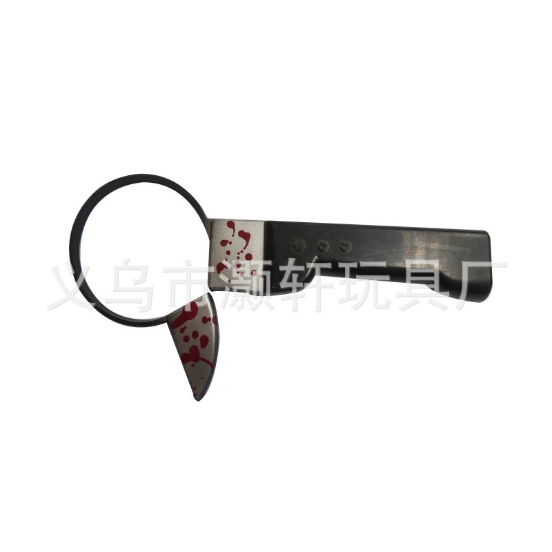 • プラスチック製の穴あけナイフ、斧、ワインボトル、レンチ、ハンマー、注射器、はさみ、のこぎり、小道具、ハロウィーンのパロディおもちゃ