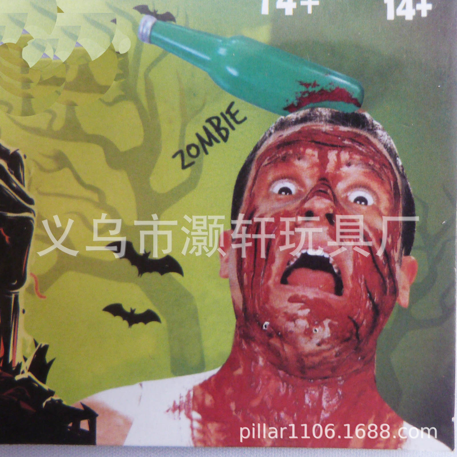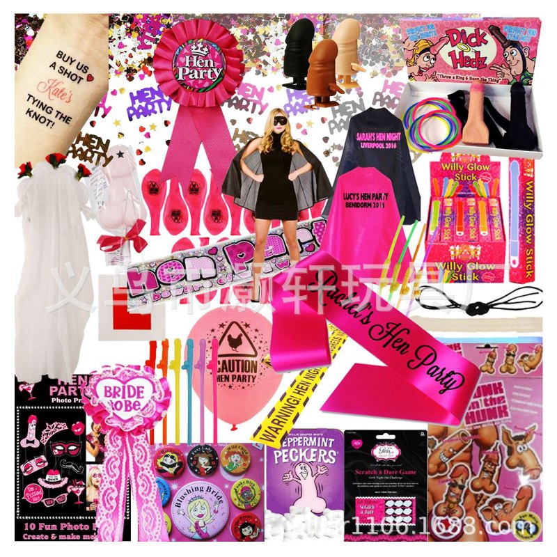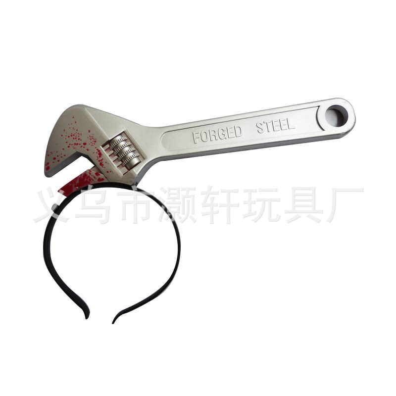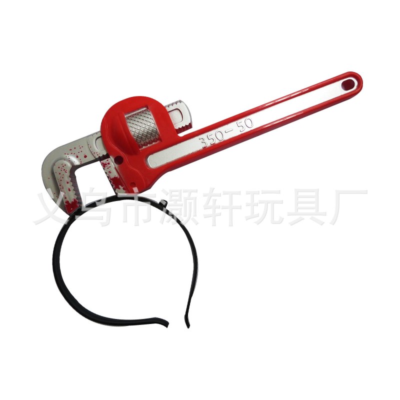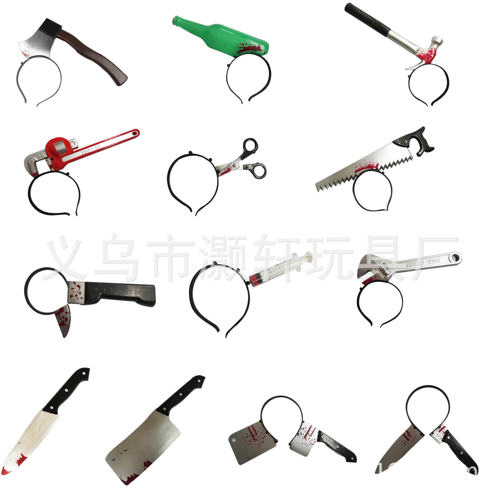 • プラスチック製の穴あけナイフ、斧、ワインボトル、レンチ、ハンマー、注射器、はさみ、のこぎり、小道具、ハロウィーンのパロディおもちゃ