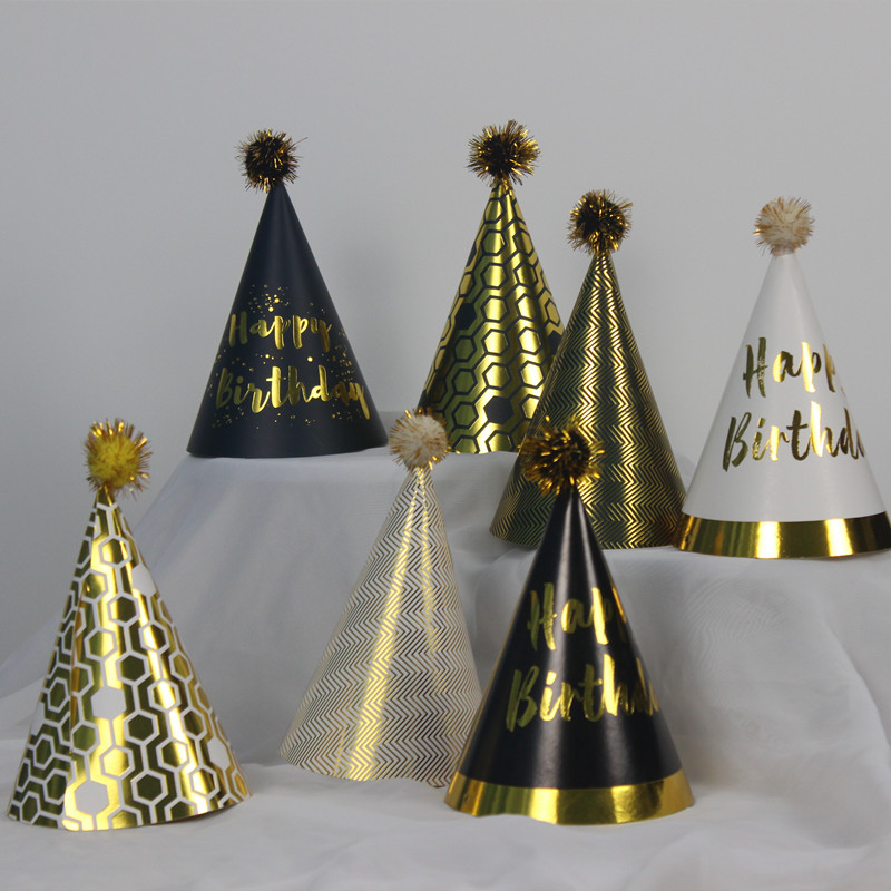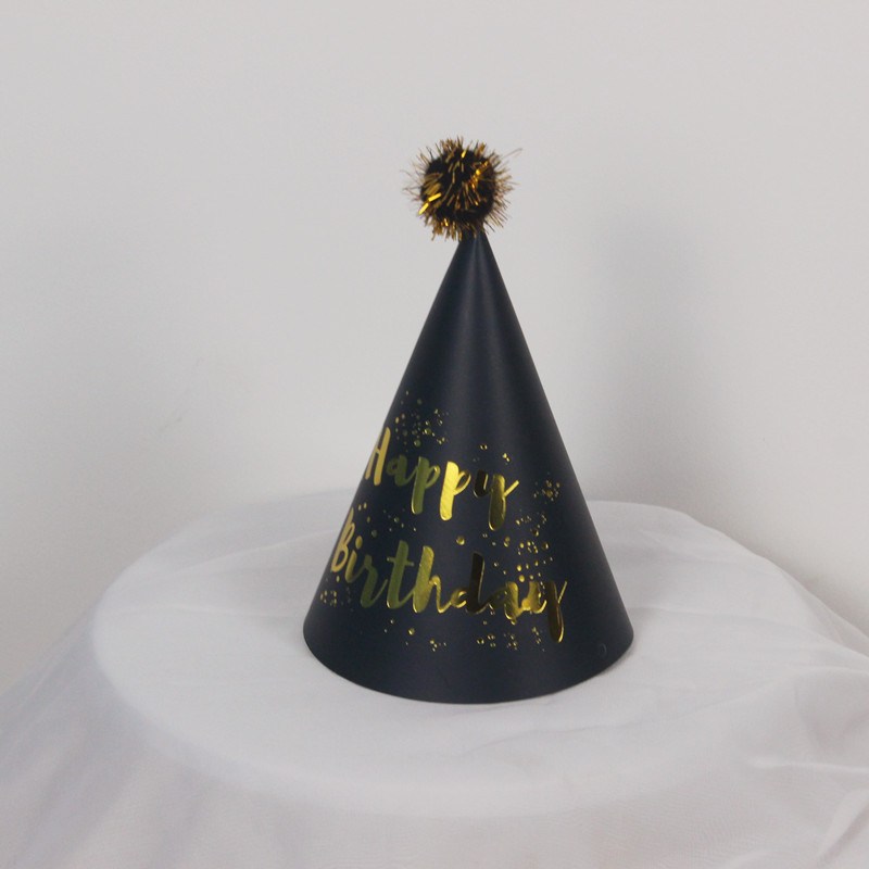 • クリエイティブ誕生日ケーキ子供の誕生日帽子ドレスアップブロンズスパンコールブラックゴールドポンポン帽子ポンポンパーティーデザート