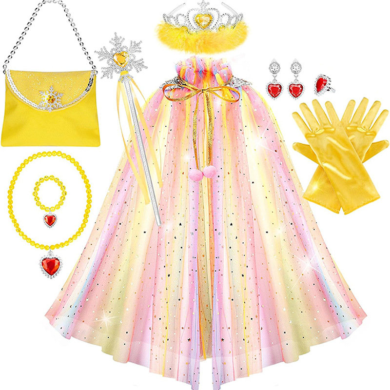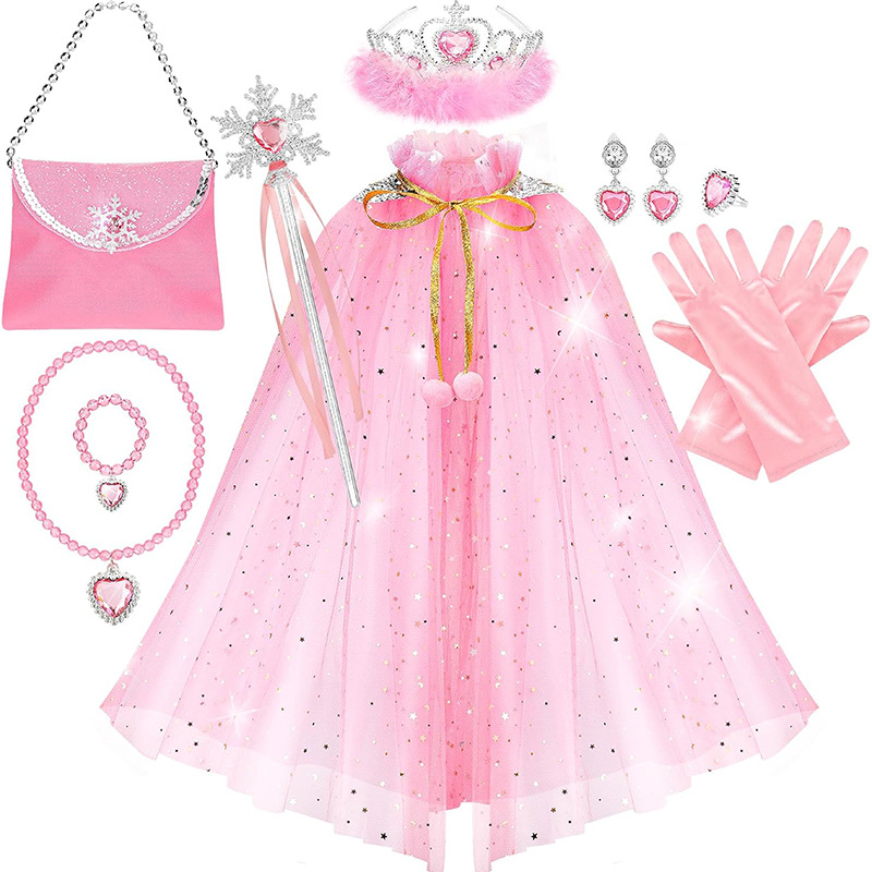 • アナと雪の女王 キッズ ガールズ コインケース クラウン 魔法の杖 ネックレス 手袋セット プリンセス エルサ スパンコール付きマント