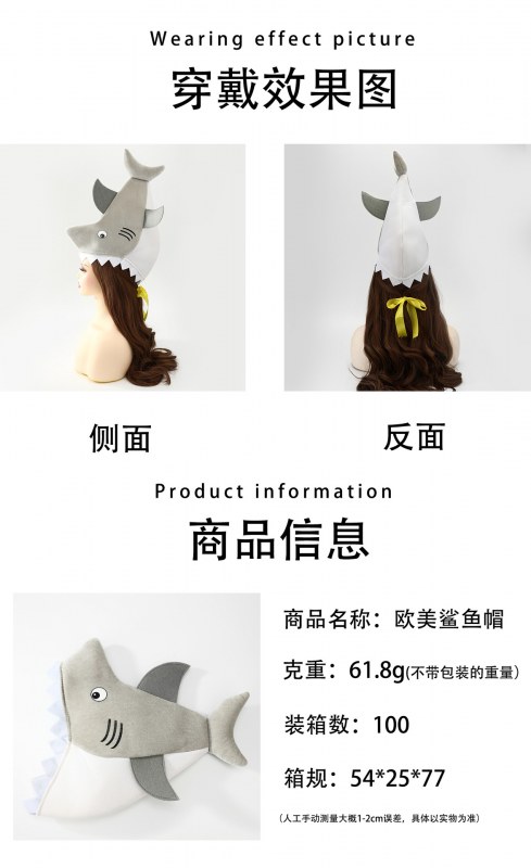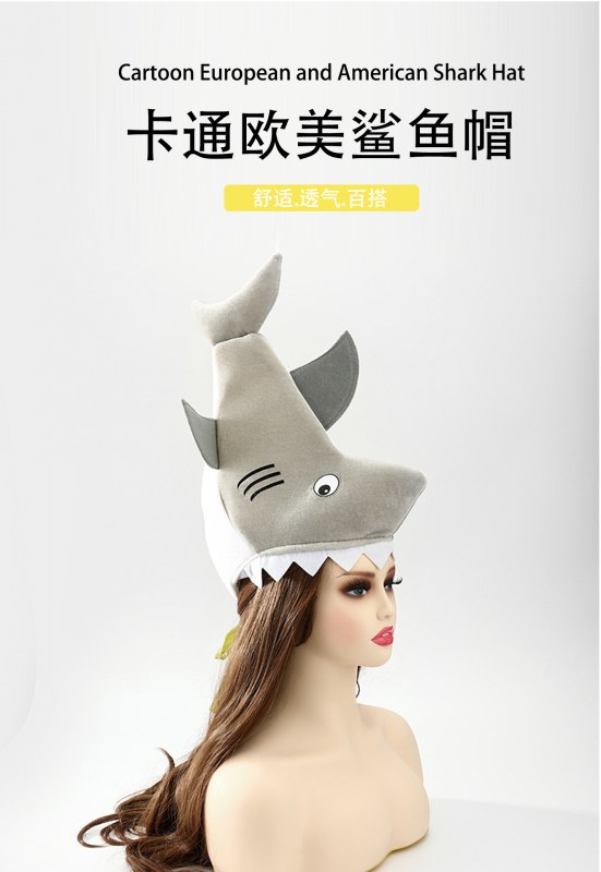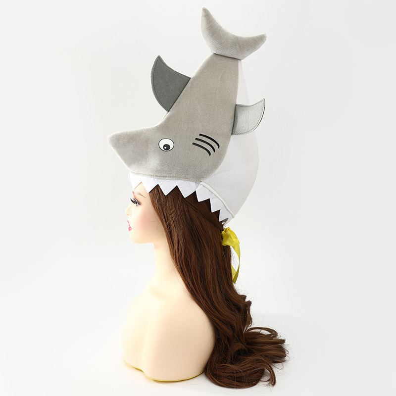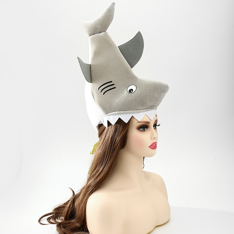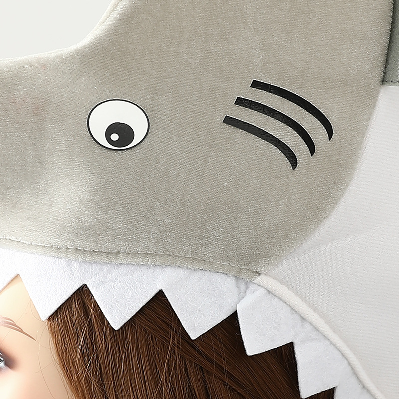 • 模擬サメのヘッドギア、既製の写真小道具、パフォーマンス小道具、漫画の帽子、プリントされたハロウィーン パーティー ハット