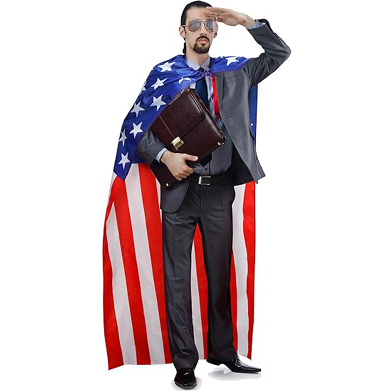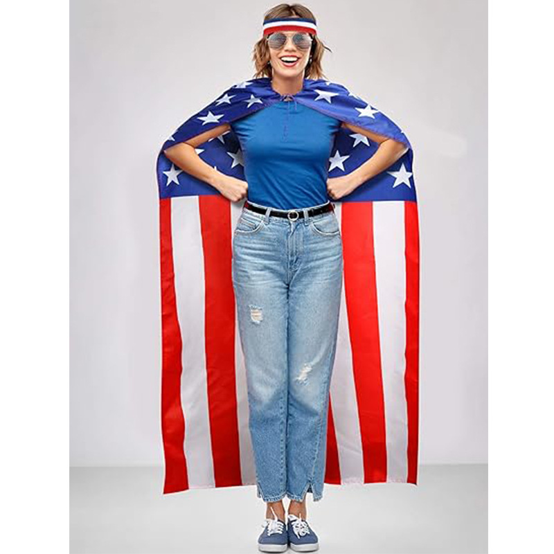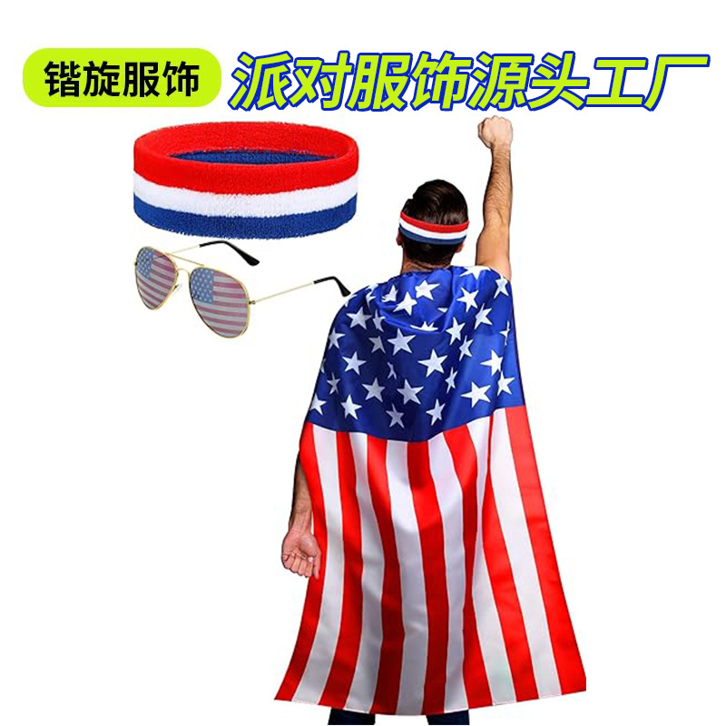 • アメリカ独立記念日のお祝いレトロ 80 年代アメリカのサングラスと国旗ヘッドバンド旗衣装ケープ