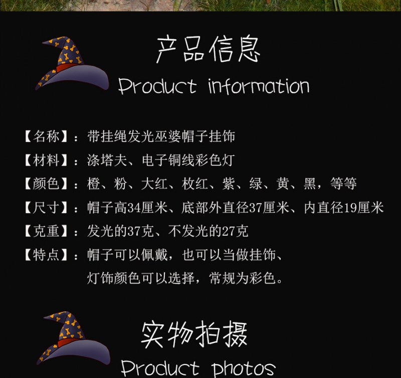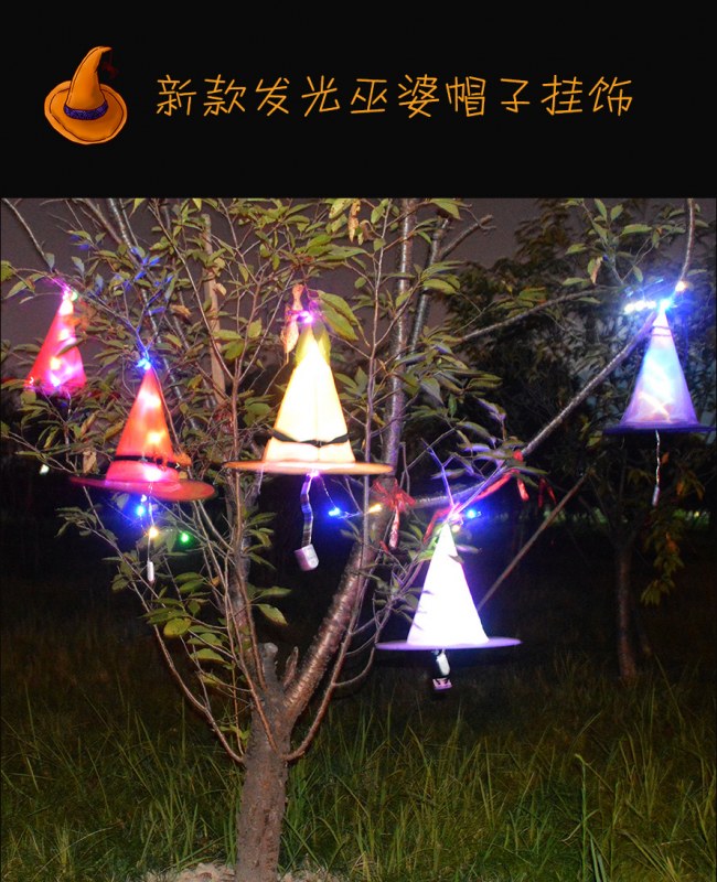 • ハロウィン魔女の帽子光る魔法使いの帽子マジシャンの帽子ペンダントネクタイ紐付き光る魔女の帽子の装飾