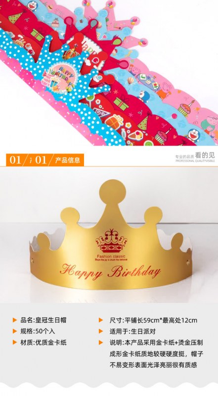• 誕生日帽子 1 歳の赤ちゃんの使い捨て誕生日帽子アレンジメント子供用ユニバーサルインターネット有名人の王冠の帽子ゴールドカードパーティーハット