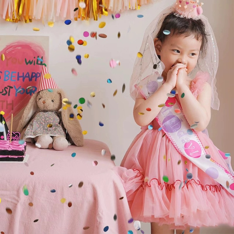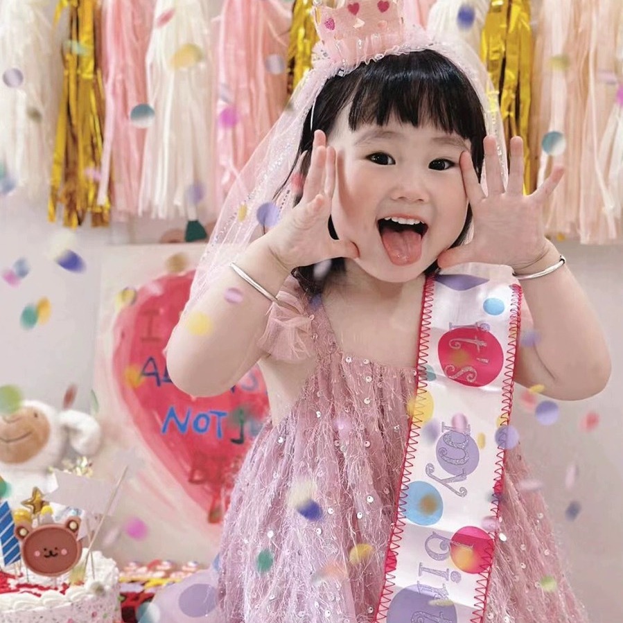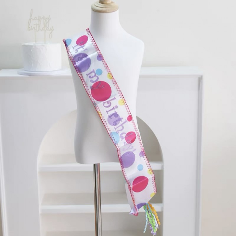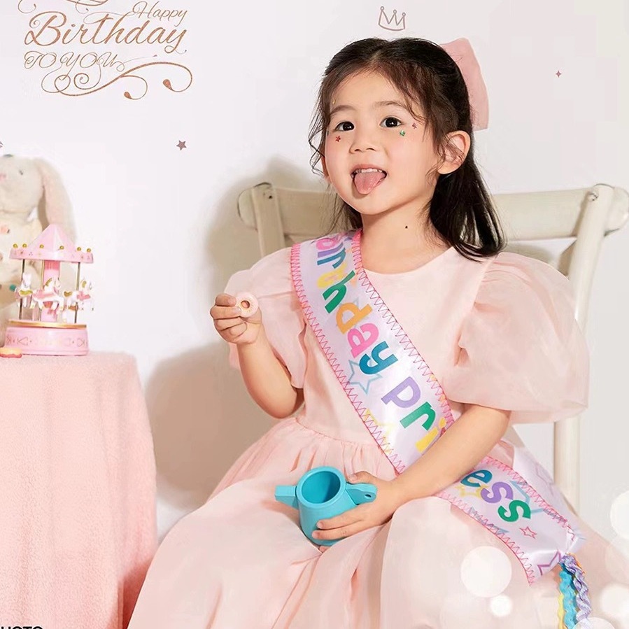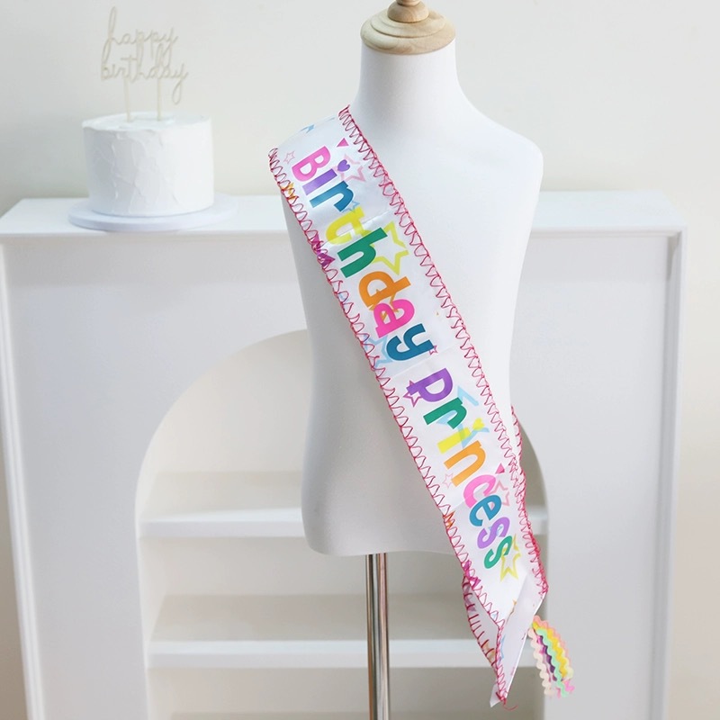 • カラフルな誕生日エチケットベルト、子供用タッセルショルダーストラップ、リボン、女神パーティーの写真小道具
