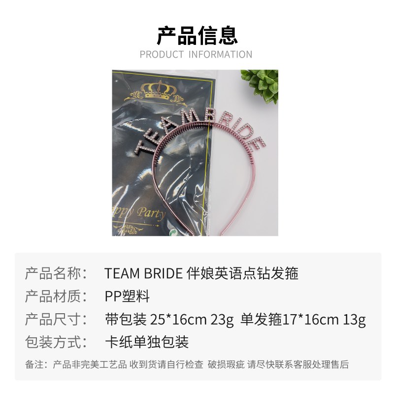 • レターヘッドバンドブライドメイドTEAMBRIDEクラウン服貿易モデル