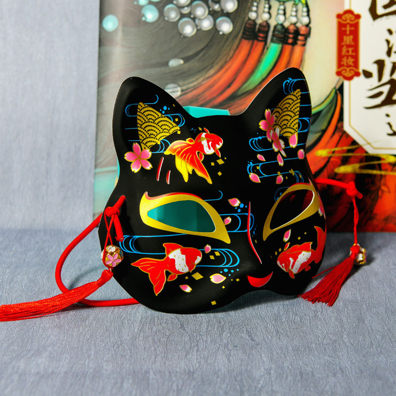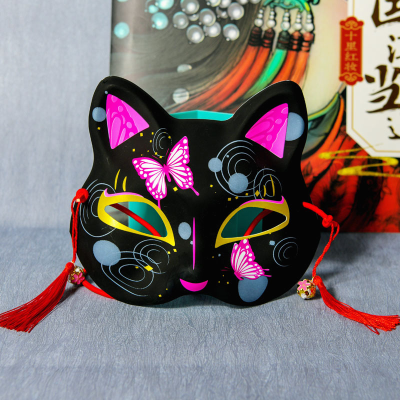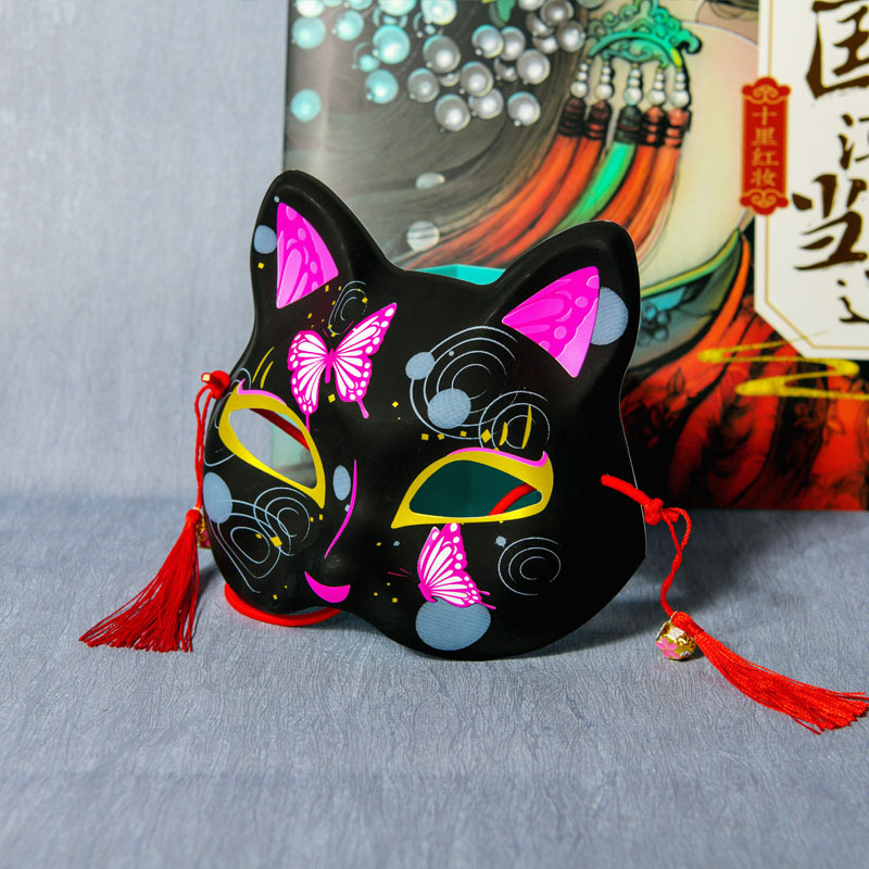 • 新しい黒スタイル猫フェイスマスク和風ハーフフェイス猫フルフェイス猫フェイスマスクアニメキツネ陰陽師