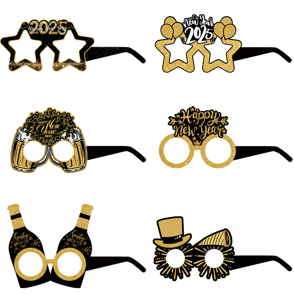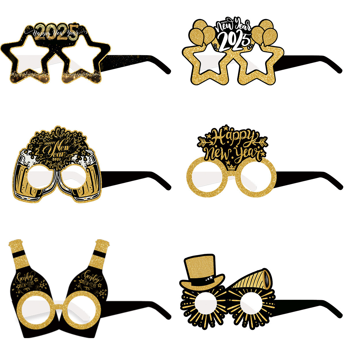• 新製品 2025 新年装飾紙メガネクロスボーダー大人子供紙色ブラックゴールドメガネパーティー用品