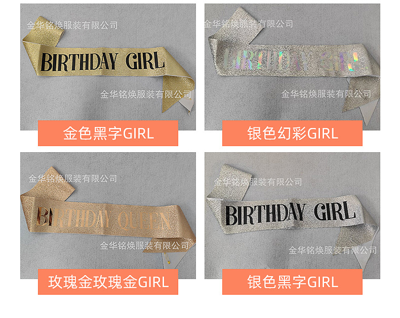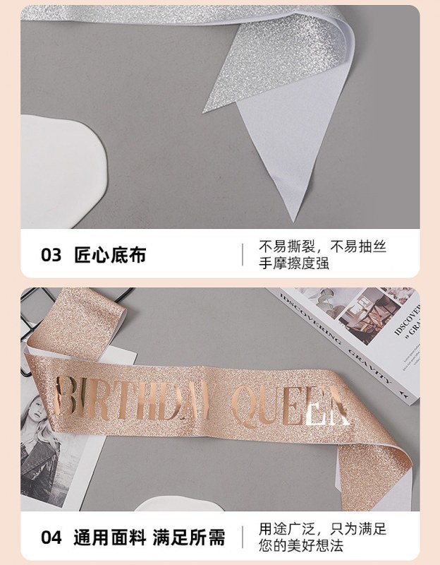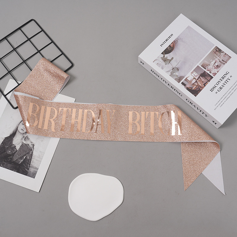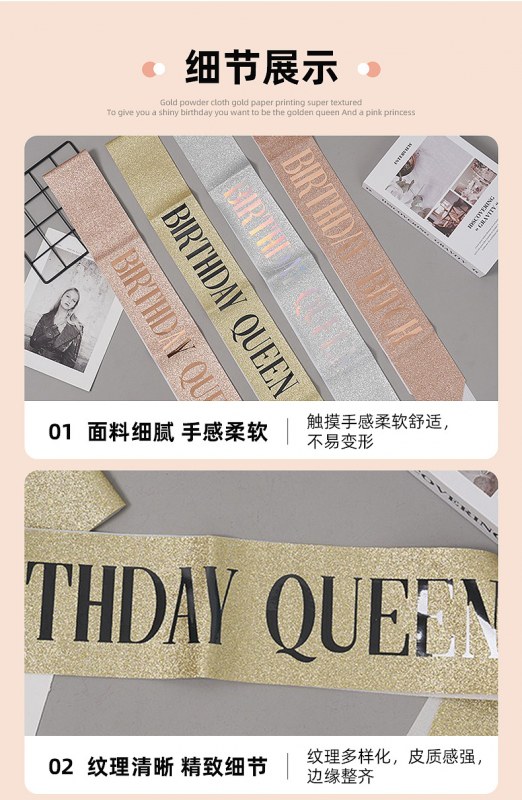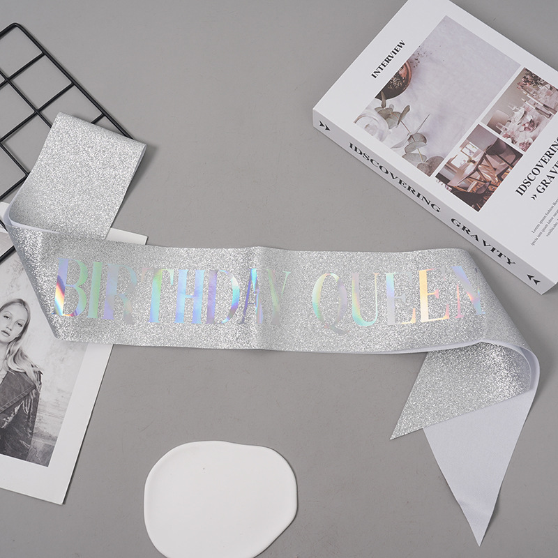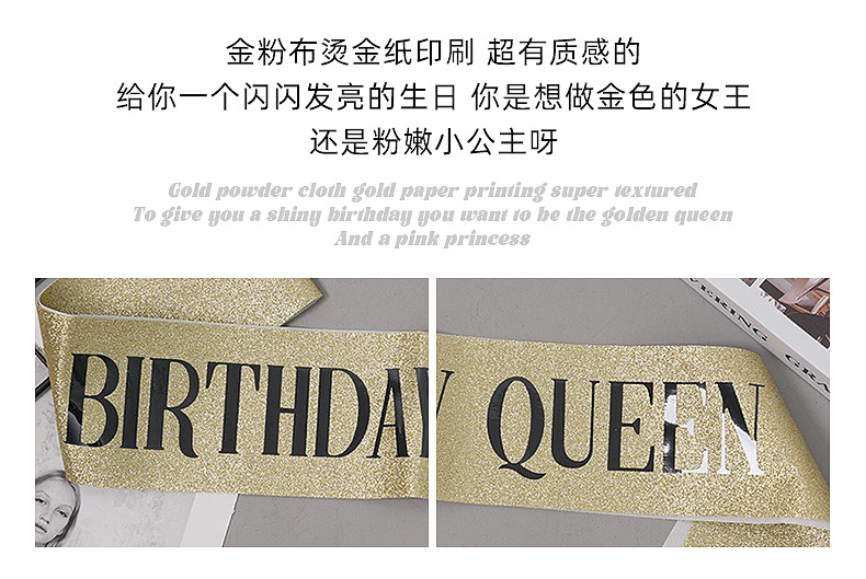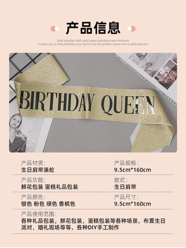 • 卸売新しい誕生日パーティーアクセサリーホリデーショルダーストラップシャンパンカラーホットスタンプBIRTHDAN QUEENエチケットストラップ