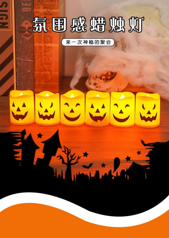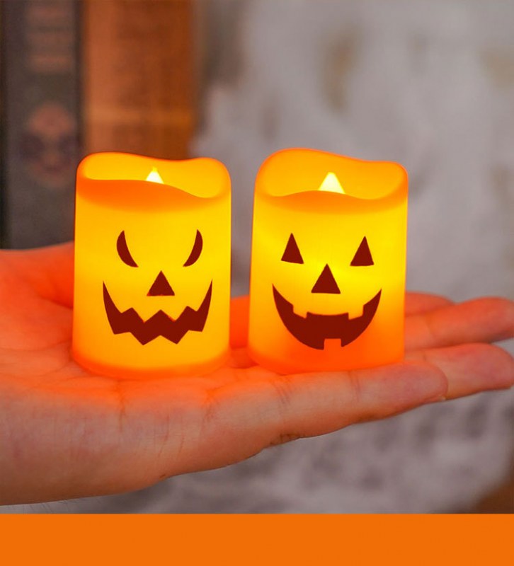 • ハロウィン電子キャンドルライト装飾燭台アンビエントライトホラーハロウィンカボチャランタンデスクトップオーナメント