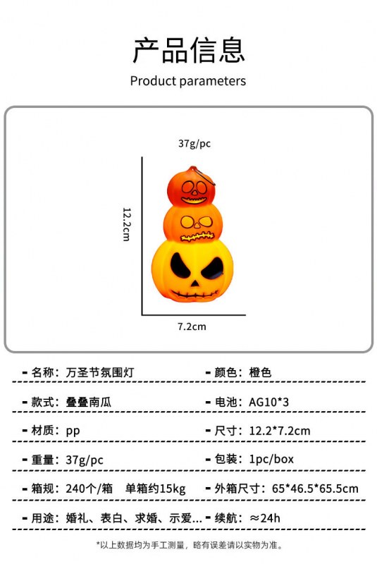• ハロウィーングローカボチャランプLEDハンド - ポンプキンの装飾小道具秘密の部屋エスケープテロ雰囲気のシーンレイアウト