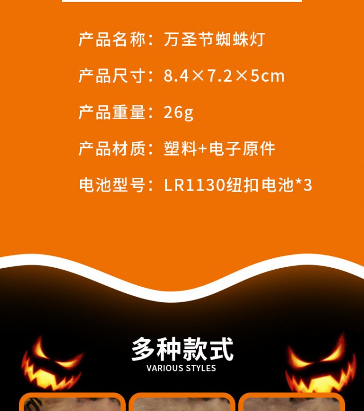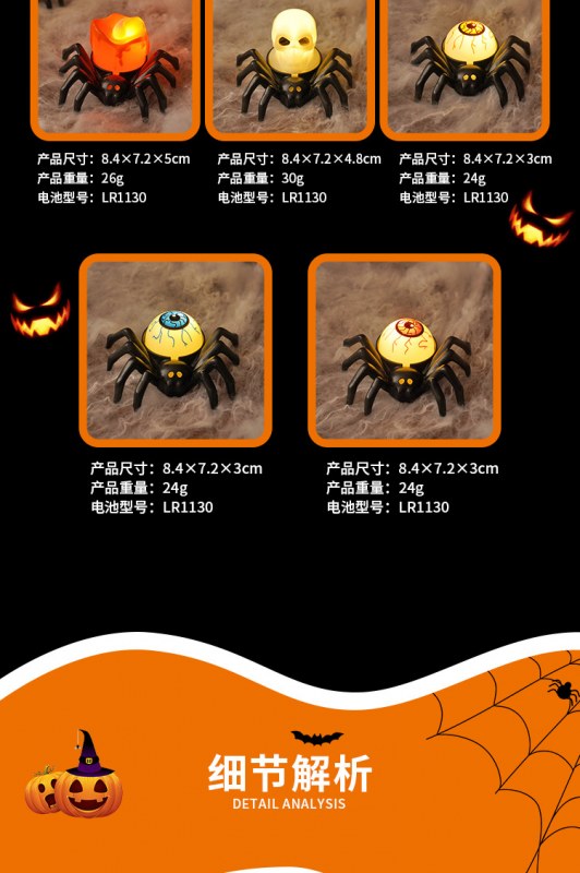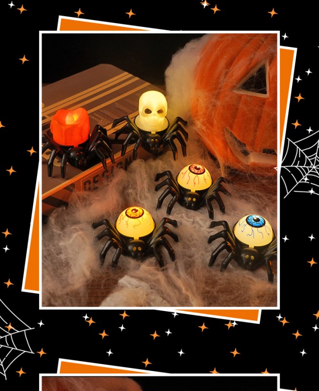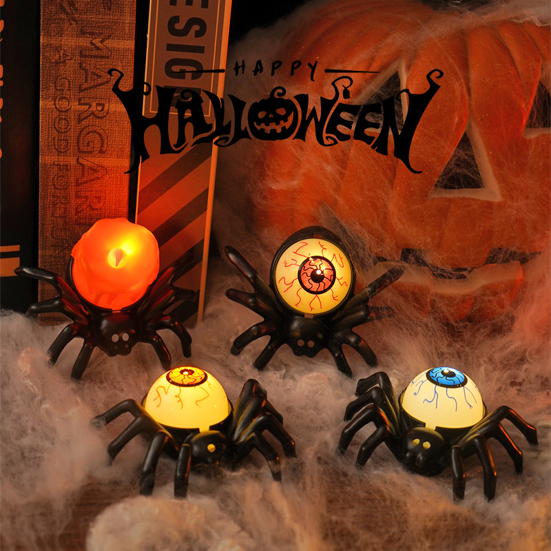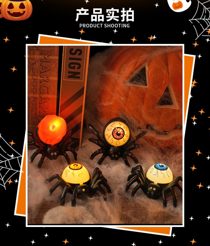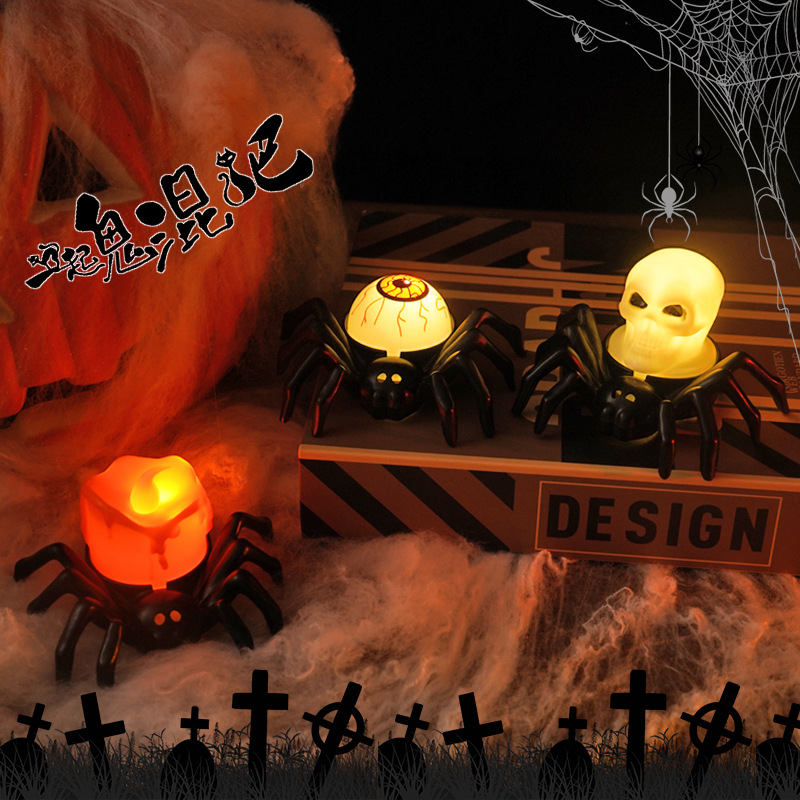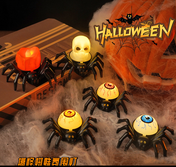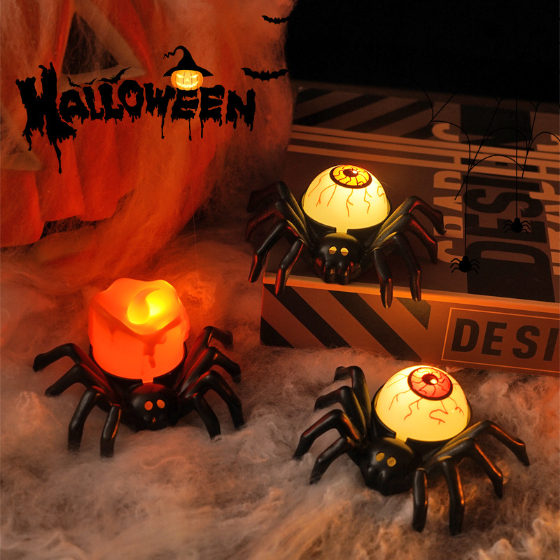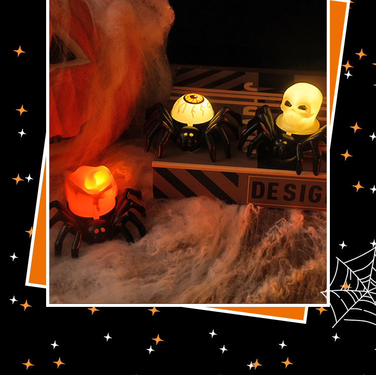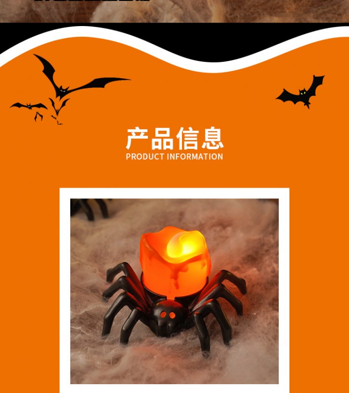• ハロウィーンスパイダーエレクトロニックキャンドルライトシミュレーションスパイダーナイトライトパーティーホラーホラー雰囲気プロップランプ