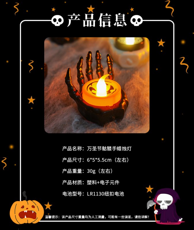 • ハロウィーンのスケルトンハンドキャンドルライト導かれたテロ雰囲気リトルナイトランタンパーティーライブサプライヤーピンザルデスクトップスラッシュ