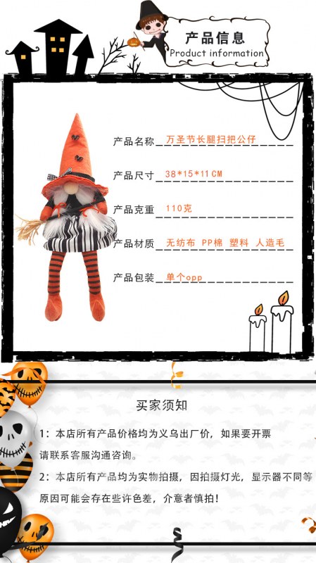 • ハロウィーンの装飾的な長い顔のない人形人形ドワーフクリエイティブシッティング姿勢人形会場レイアウト小道具