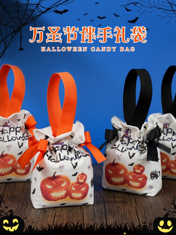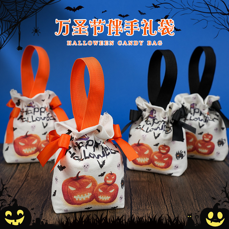 • ハロウィーンキャンディーバッグ子供用カボチャハンドバッグキャンバスギフトパッケージギフトバッグ小道具幼稚園グループギフト