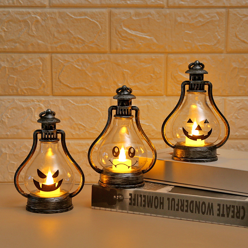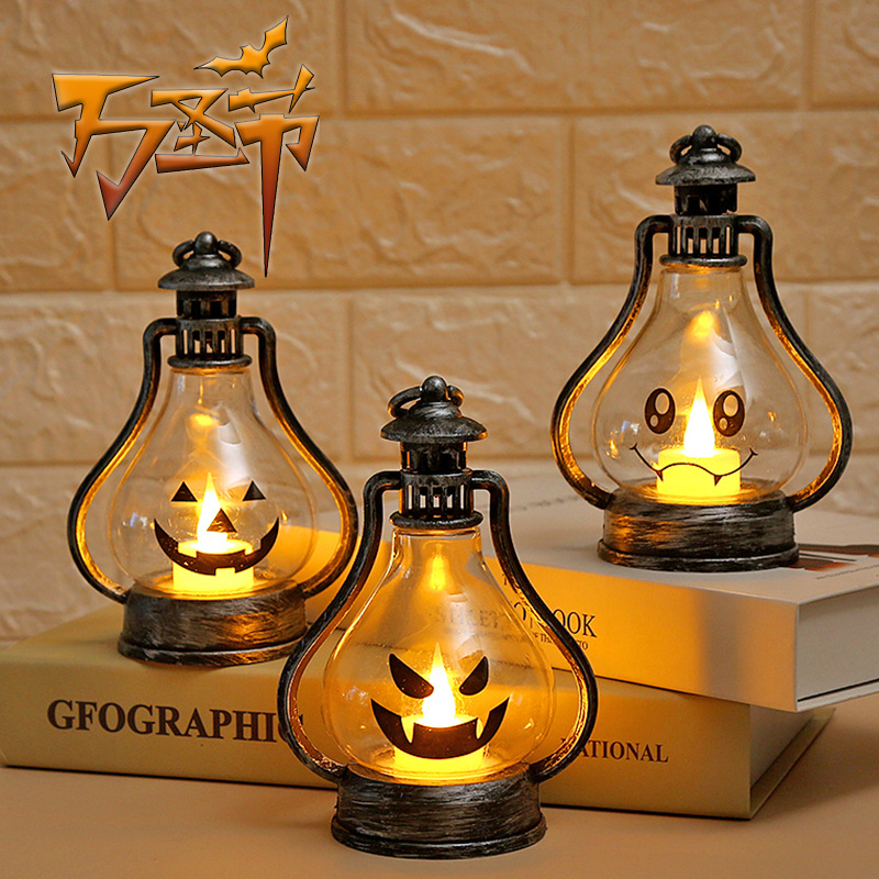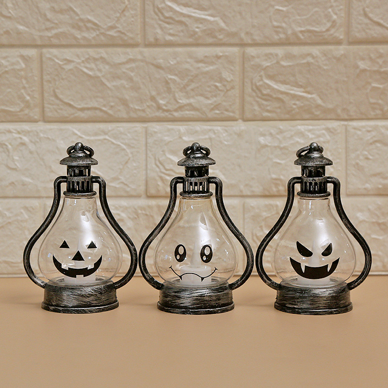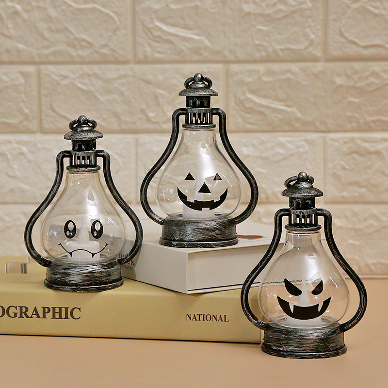 • ハロウィーンパンプキンランタンチルドレンポートレートNo. 7バッテリーライトライト新しいレトロシルバーデコレーションスイングプロップ