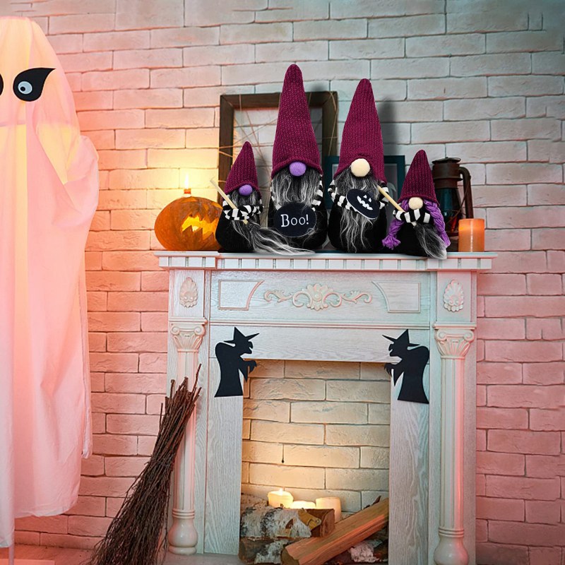 • 魔法のほうきの小人装飾雰囲気のプロップ装飾ハロウィーンの顔のない人形