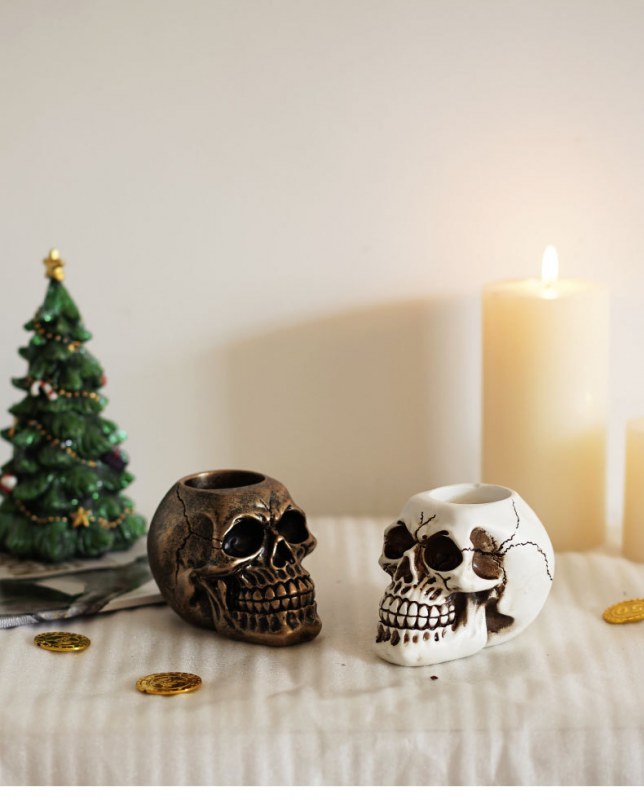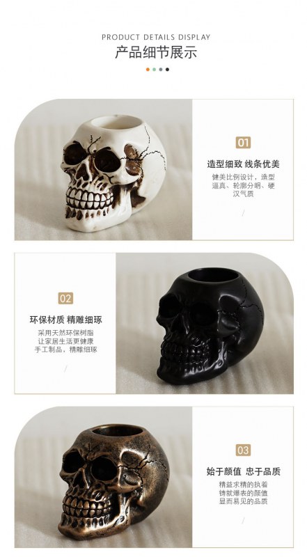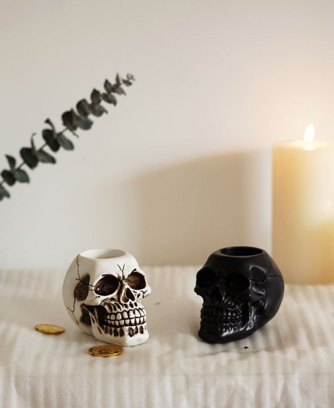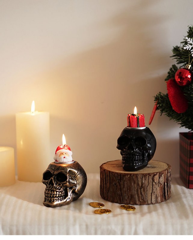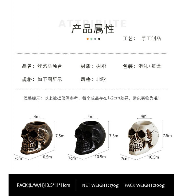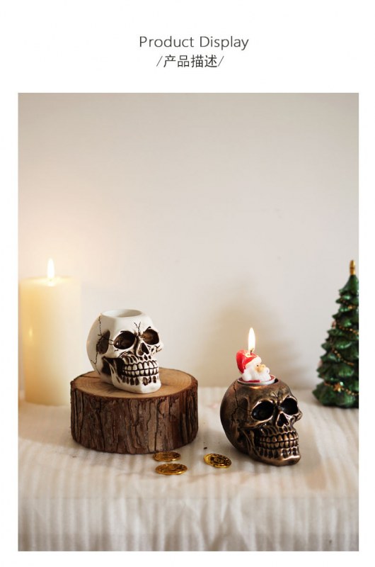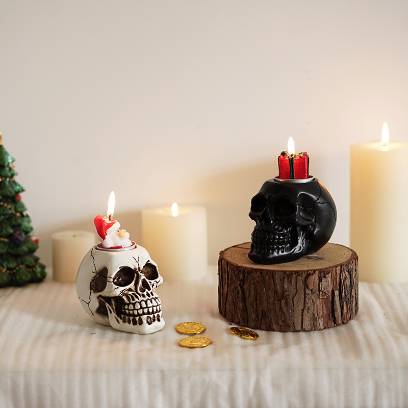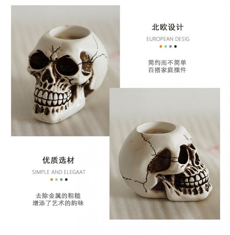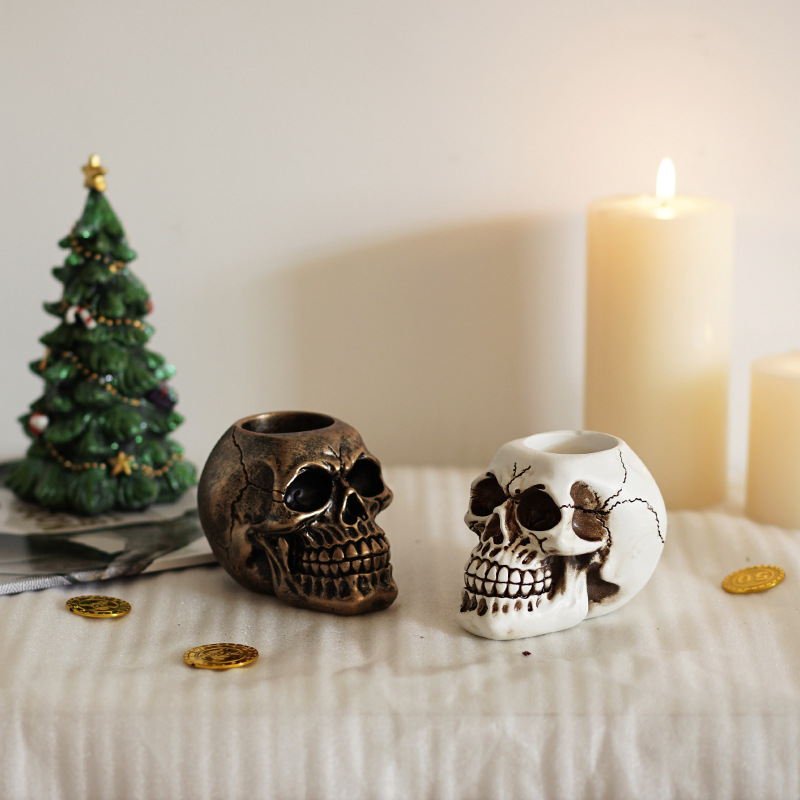 • 新製品の頭蓋骨キャンドルスティッククリエイティブハロウィーンゴーストフェスティブレジンクラフトデスクトップポーチの装飾装飾