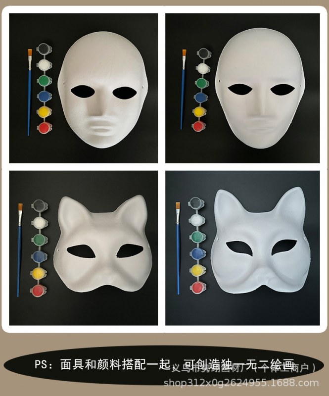 • ハロウィーンホワイト胚女性フェイスマスクDIYペインティングパルプ男性の顔フェイスホワイトキャットマスクフォックスマスク
