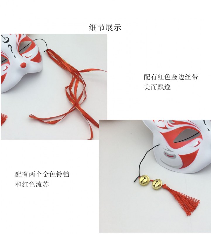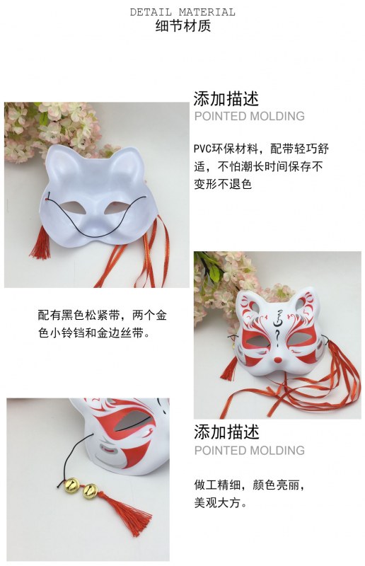 • 塗装済み日本のスタイルとウィンドフォックスマスクハーフ - フェイスハーフ - 古代スタイルハンフメイクアップボールコスアニメ猫フェイスフォックスデーモンフェイス