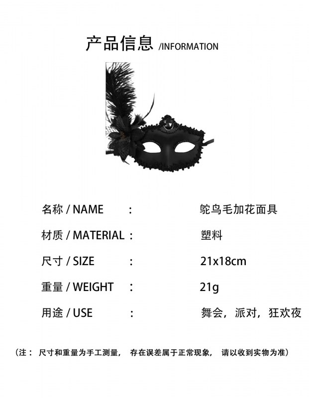• 黑色花纹羽毛面具