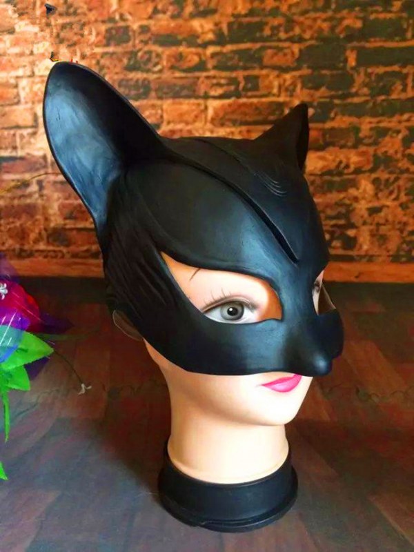 • ハロウィーンパーティードレッシングブラックハーフフェイスセクシーな猫の女性のフードキャットウーマンビューティーヌードルスキン、コウモリ