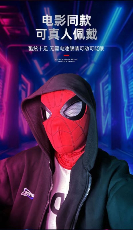 • 无灯光电动蜘蛛侠头套+戒指控制【迈尔斯彩盒装】